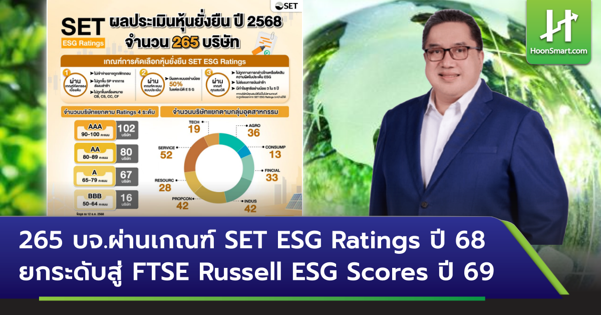 265 บจ.ผ่านเกณฑ์ SET ESG Ratings ปี 68 ยกระดับสู่ FTSE Russell ESG Scores ปี 69