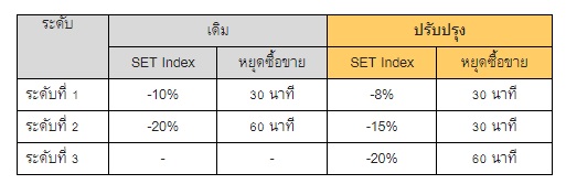 ตลาดหลักทรัพย์ฯ ตระหนักถึงความจำเป็นที่จะต้องมีเกณฑ์เกี่ยวกับมาตรการดำเนินการสำหรับใช้ในกรณีมีเหตุการณ์ที่อาจมีผลกระทบต่อตลาดหลักทรัพย์ฯ เพื่อลดผลกระทบดังกล่าว รวมทั้งปรับปรุงเกณฑ์ Circuit Breaker เพิ่มโอกาสแก่ผู้ลงทุนให้มีเวลาในการวิเคราะห์ข้อมูลข่าวสารเพื่อใช้ประกอบการตัดสินใจลงทุนได้ดีขึ้น ดังนี้