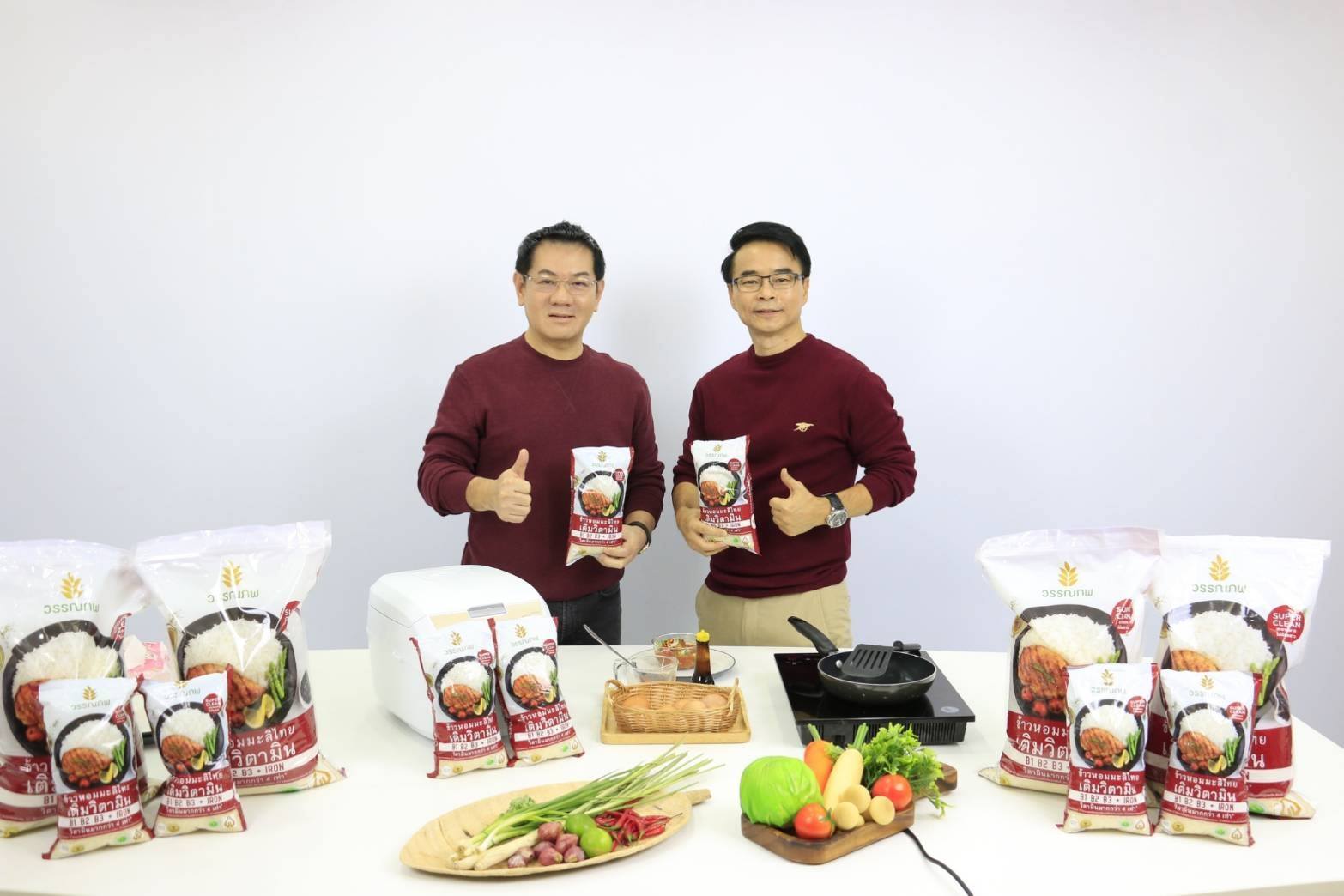 นพ. สิทธวีร์ เกียรติชวนันต์ ประธานกรรมการบริหาร และ นพกฤษฏิ์ นิธิเลิศวิจิตร ประธานเจ้าหน้าที่บริหาร บริษัท ซัคเซส มอร์ บีอิ้งค์ (SCM) เปิดตัวผลิตภัณฑ์ “ข้าววรรณภพ” นวัตกรรมข้าวเติมวิตามิน สะอาดไม่ต้องซาว ให้คนไทยได้ทานข้าวสดใหม่ ต้นฤดู ด้วยมาตรฐานการผลิตระดับ World Class
