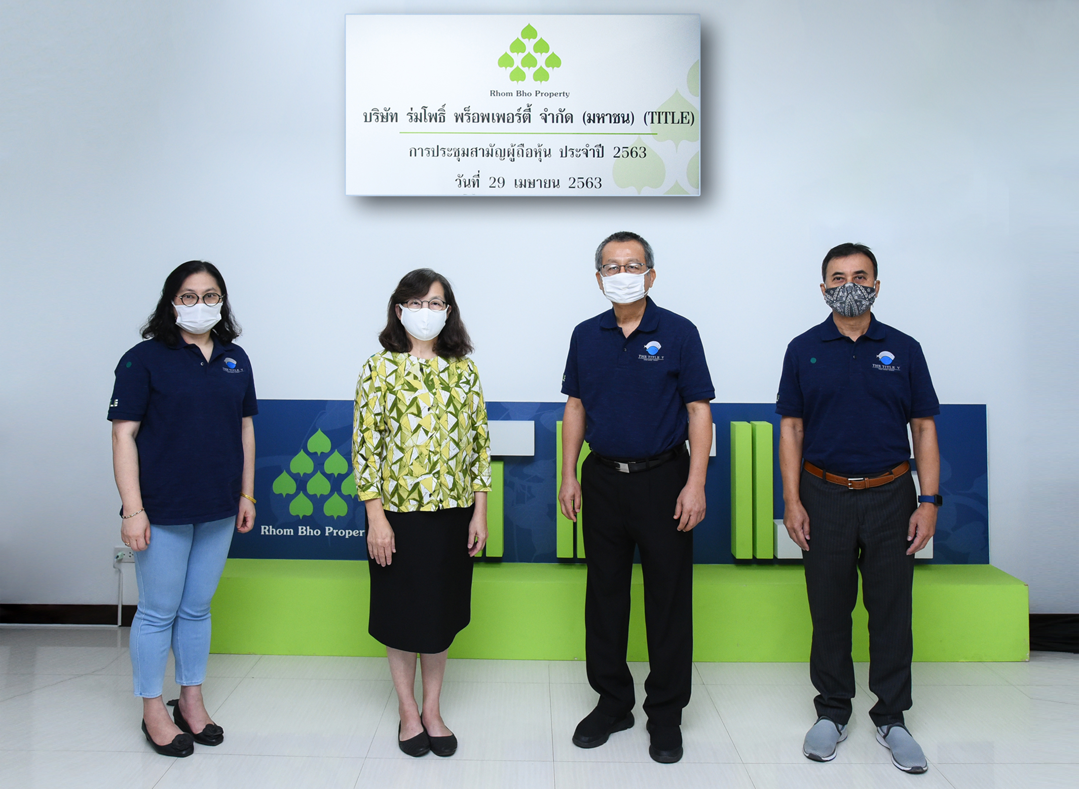 สุวิช ล่ำซำ (ที่ 2 จากขวา) ประธานกรรมการ บริษัท ร่มโพธิ์ พร็อพเพอร์ตี้ ( TITLE ) พร้อมด้วยคณะกรรมการบริษัทฯ ถ่ายภาพร่วมกัน ภายหลังการประชุมสามัญผู้ถือหุ้นประจำปี 2563 โดยที่ประชุมมีมติอนุมัติการจ่ายเงินปันผล เป็นหุ้นและเงินสด อัตราหุ้นละ 0.05 บาท ให้แก่ผู้ถือหุ้นเดิม ในอัตรา 10 หุ้นเดิมต่อ 1 หุ้นปันผล และจ่ายปันผลเป็นเงินสดในอัตราหุ้นละ 0.0055555556 บาท กำหนดจ่ายปันผลวันที่ 22 พฤษภาคม 2563 โดยจัดขึ้น ณ ห้องประชุมของบริษัท เลขที่ 53 ถนนสุคนธสวัสดิ์ แขวงลาดพร้าว เขตลาดพร้าว กรุงเทพมหานคร เมื่อเร็วๆนี้