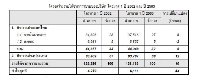บริษัท เจริญโภคภัณฑ์อาหาร (CPF) เปิดเผยผลการดำเนินงานไตรมาส 1 ปี 2563 กำไรสุทธิ 6,110.93 ล้านบาท กำไรต่อหุ้น 0.73 บาท เพิ่มขึ้น 43% จากงวดเดียวกันของปีก่อนกำไรสุทธิ 4,279.40 ล้านบาท กำไรต่อหุ้น 0.50 บาท