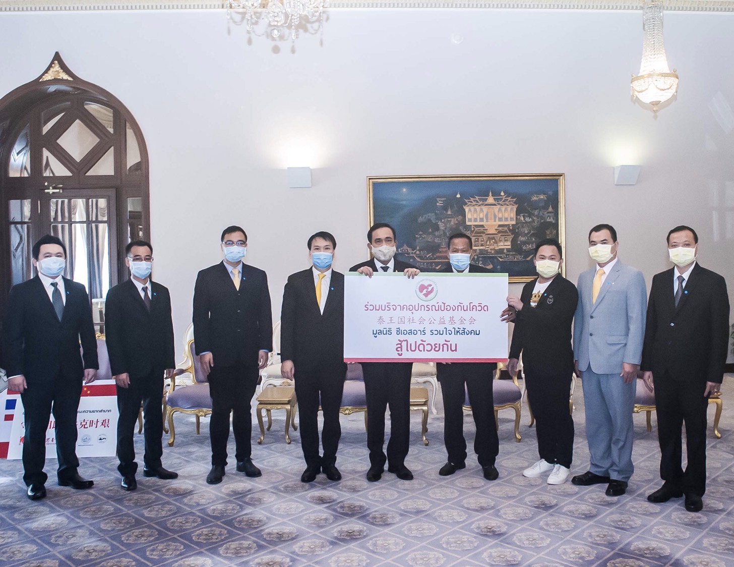 พณฯ พลเอกประยุทธ์ จันทร์โอชา นายกรัฐมนตรี (กลาง) รับมอบสิ่งของบริจาค เพื่อนำไปช่วยเหลือ ผู้ประสบความเดือดร้อนจากสถานการณ์การแพร่ระบาดของไวรัสโควิด -19 โดยมีพลเอกธันวาคม ทิพยจันทร์ (คนที่ 4 จากขวา) ประธานมูลนิธิซีเอสอาร์รวมใจให้สังคม และ อมร มีมะโน (คนที่ 4 จากซ้าย) ผู้ก่อตั้ง บริษัท เอเจ แอดวานซ์ เทคโนโลยี จำกัด (AJA) พร้อมด้วยกลุ่มนักธุรกิจจีน – ไทยพี่น้องกัน ภัตตาคารเสฉวน และภัตตาคารกวางตุ้ง ได้มอบเจลแอลกอฮอล์และสเปรย์แอลกอฮอล์ เครื่องวัดอุณหภูมิร่างกาย หน้ากากอนามัย และข้าวกล่อง มูลค่ารวม 4.5 ล้านบาท เพื่อนำไปใช้ให้เกิดประโยชน์อย่างสูงสุด กิจกรรมดังกล่าวจัดขึ้น ณ ตึกไทยคู่ฟ้า ทำเนียบรัฐบาล เมื่อเร็ว ๆ นี้