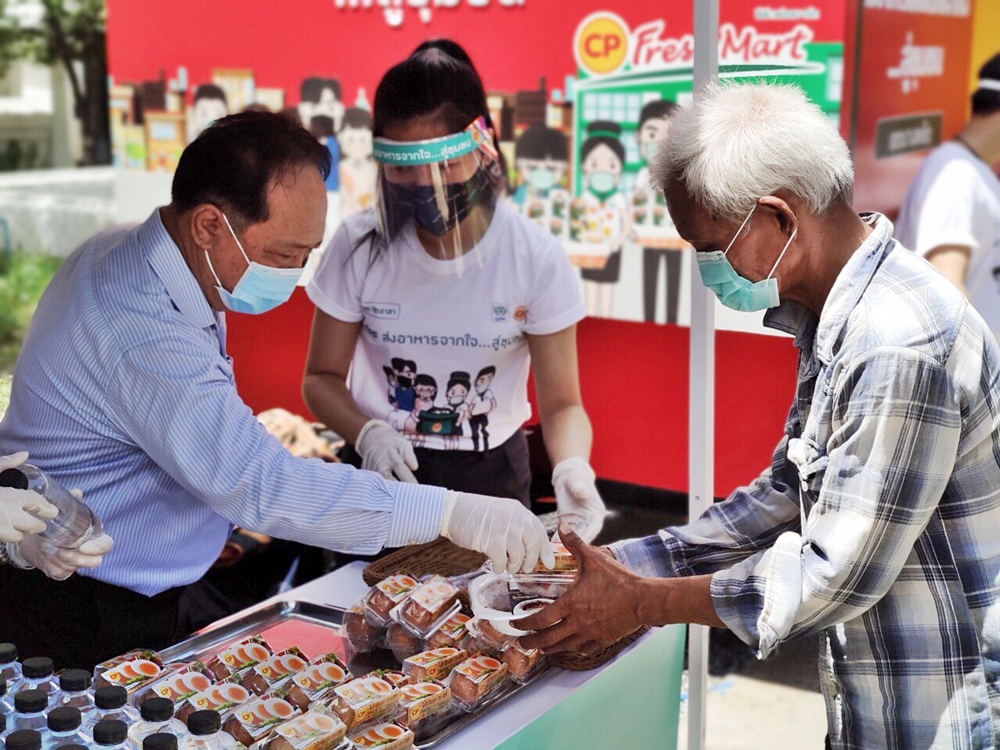 นายณัฐชัย กล่าวว่า บริษัทเล็งเห็นถึงความยากลำบากของคนไทยในช่วงวิกฤติเช่นนี้ ซีพีเอฟจึงขอมีส่วนร่วมในการบรรเทาทุกข์และลดภาระค่าครองชีพแก่พี่น้องประชาชนอย่างต่อเนื่อง มาตั้งแต่ต้นเดือนพฤษภาคม ด้วยการมอบอาหารคุณภาพดี สะอาดปลอดภัย มาตรฐานส่งออก พร้อมกับไข่ไก่ต้ม และน้ำแร่ เพื่อเติมเต็มความอิ่มอร่อย ส่งถึงมือพี่น้องประชาชนชุมชนต่างๆ ในพื้นที่กรุงเทพมหานคร 6 เขต ตั้งแต่บางกอกน้อย บางพลัด บางบอน ห้วยขวาง หนองแขม บางขุนเทียน และยังคงส่งมอบความสุขเช่นนี้ต่อไป