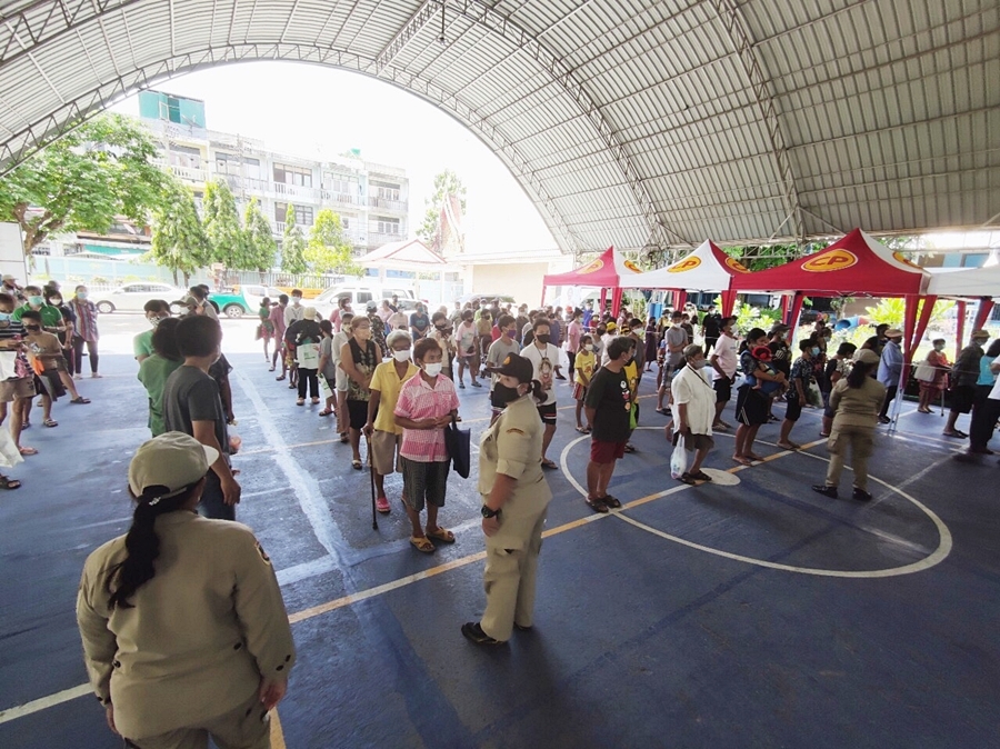 ชนินทร์ รุ่งแสง คณะที่ปรึกษารัฐมนตรีว่าการกระทรวงเกษตรและสหกรณ์ และ สมหมาย เตชะศิรินุกูล รองกรรมการผู้จัดการบริหาร บริษัทเจริญโภคภัณฑ์อาหาร ( CPF ) พร้อมชาวซีพีเอฟจิตอาสา ร่วมกันส่งมอบอาหารแสนอร่อย ถึงมือพี่น้องชาวชุมชนวัดสามัคคีสุทธาวาส ที่ได้รับผลกระทบในช่วงโควิด-19 ณ ลานกิจกรรมของโรงเรียนวัดสามัคคีสุทธาวาส เขตบางพลัด