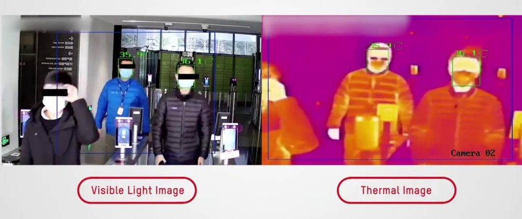 Hikvision Thermal Camera หรือ กล้องเทอร์โมสแกน นั้น เป็นกล้องตรวจวัดอุณหภูมิร่างกายแบบอินฟาเรด ที่สามารถวัดค่าอุณหภูมิได้แม่นยำด้วยเทคโนโลยี AI (AI Detection) ใช้เจาะจงตรวจจับใบหน้าเพื่อให้วัดอุณภูมิเฉพาะที่หน้าผากเท่านั้น หลีกเลี่ยง False Alarms จากวัตถุร้อนอื่นๆที่บุคคลถือติดตัวมา เช่น โทรศัพท์มือถือ แก้วกาแฟร้อน อาหารร้อน เป็นต้น การทำงานของ Hikvision Thermal Camera มีฟังก์ชั่นตรวจจับความร้อนของบุคคลด้วยรังสีอินฟราเรด แล้วแปลงเป็นอุณภูมิร่างกาย จากนั้นก็ประมวลผลเป็นภาพสองมิติ เมื่อตรวจพบว่าอุณหภูมิสูงผิดปกติระบบจะแจ้งเตือนไปที่ผู้ปฎิบัติงาน และทำการบันทึกภาพของบุคคลเป้าหมายหรือผู้ที่มีอุณหภูมิร่างกายสูงกว่าปกติไว้เป็นหลักฐานได้ทันที ใช้งานง่ายและรวดเร็ว เพราะแค่บุคคลเดินผ่านกล้องก็สามารถสแกนตรวจจับความร้อนได้ทันที เพียง 1 วินาทีต่อคน และสามารถสแกนคนกลุ่มใหญ่ได้ในคราวเดียวแบบไม่จำกัดจำนวน ทำให้ลดความแออัดของจำนวนคนที่รอคิว จึงเหมาะสำหรับจุดคัดกรองคนจำนวนมาก เช่น แหล่งที่มีการชุมนุมของคนจำนวนมาก, อาคารสำนักงาน, โรงพยาบาล, โรงแรม, ห้างสรรพสินค้าและสนามบิน เป็นต้น