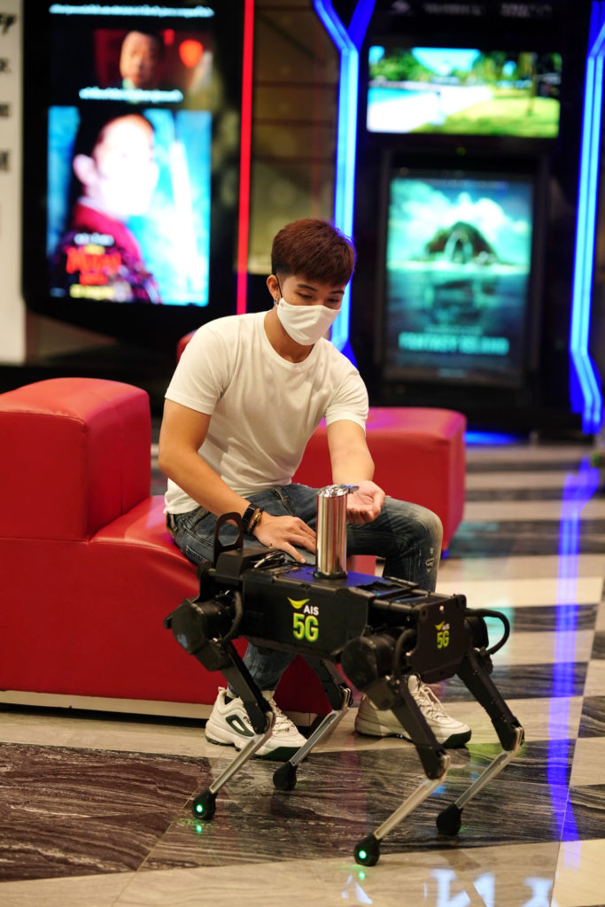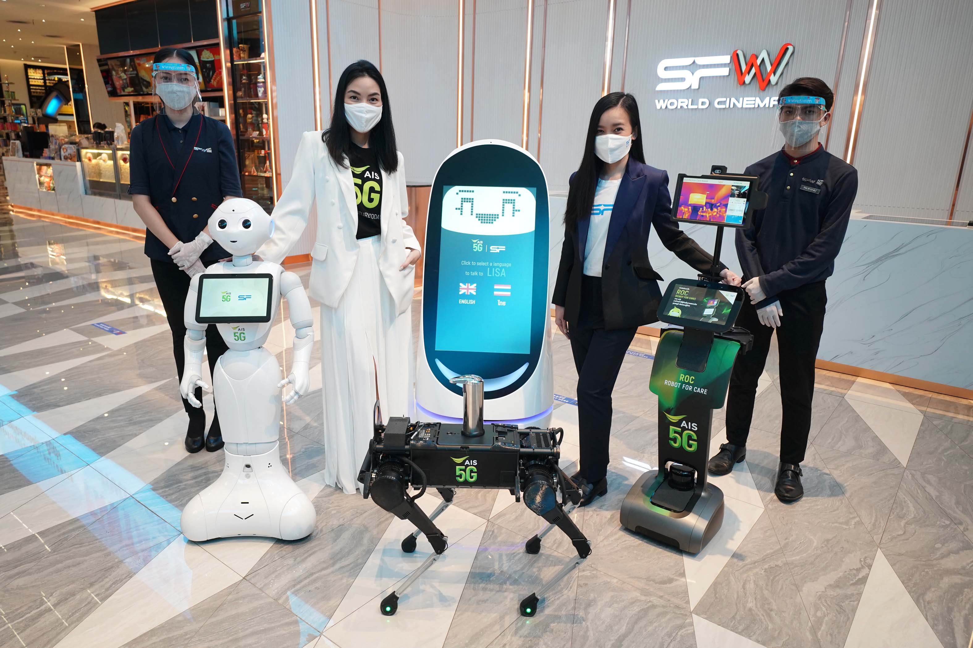นางศิวลี บูรณสงคราม หัวหน้าแผนกงานบริหารแบรนด์ บริษัท แอดวานซ์ อินโฟร์เซอร์วิส ( ADVANC ) เปิดเผยว่า เอไอเอส ได้ผนึกโรงภาพยนต์ ในเครือ เอสเอฟ นำหุ่นยนต์ 5 จี มาช่วยคัดกรอง ตรวจวัดอุณหภูมิลูกค้า ช่วยคัดกรอง ตรวจวัดอุณหภูมิลูกค้า ให้บริการเจลแอลกอฮอลล์ ก่อนเข้าโรงภาพยนตร์ เพื่อลดการสัมผัส และป้องกันการแพร่ระบาดของ COVID-19 ภายในพื้นที่โรงภาพยนตร์ เอส เอฟ เวิลด์ ซีเนม่า