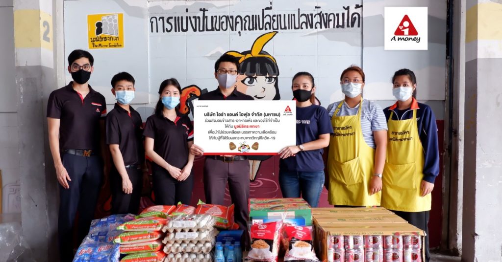 ยซูสุมุ อิโตะ (กลาง) ผู้บริหารสายงานการขายและปฏิบัติการ บริษัท ไอร่า แอนด์ ไอฟุล จำกัด (มหาชน) เป็นตัวแทนในการส่งมอบข้าวสาร อาหารแห้ง และสิ่งของเครื่องใช้ที่จำเป็นให้กับมูลนิธิกระจกเงา เพื่อนำไปช่วยเหลือและบรรเทาความเดือดร้อนให้กับผู้ที่ได้รับผลกระทบจากวิกฤตโควิด-19 จากทั่วประเทศ โดยการสนับสนุนดังกล่าวเป็นส่วนหนึ่งของการดำเนินโครงการ “A money บัดดี้ชวนทำดี” ซึ่งเป็นกิจกรรมเพื่อสังคม (CSR) ที่บริษัทฯ จัดขึ้นอย่างต่อเนื่องเป็นปีที่ 5 ภายใต้แนวคิดหลักการส่งต่อสิ่งดีๆ ให้กับสังคมในรูปแบบกิจกรรมต่าง ๆ โดยมี นางสาววีราภรณ์ ประสพรัตนสุข (ที่ 3 จากขวา) หัวหน้าฝ่ายสื่อสารองค์กร ให้เกียรติรับมอบ ณ มูลนิธิกระจกเงา หลักสี่ กรุงเทพฯ เมื่อเร็วๆ นี้