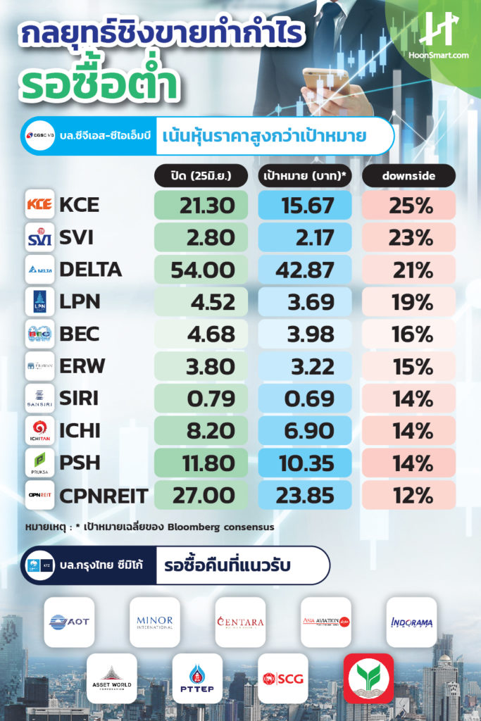 บล.ซีจีเอส-ซีไอเอ็มบี (ประเทศไทย) วิเคราะห์ว่า ตลาดจะเริ่มมีการปรับฐานลงก่อนเข้าสู่ช่วงการประกาศผลกำไรบจ.ในไตรมาส 2/2563ที่จะเริ่มในกลางเดือนก.ค. แนะนำให้นักลงทุนควรจะขายทำกำไร/short หุ้นที่มีราคาเกินราคาเป้าหมายเฉลี่ยของ Bloomberg consensus เพื่อรอซื้อกลับ ซึ่งมีโอกาสปรับตัวลง 10-20% เช่นเดียวกับ บล.กรุงไทย ซีมิโก้ แนะนำขายก่อน เพื่อรอซื้อคืนที่แนวรับ เน้นหุ้น AOT, MINT, CENTEL, AAV, IVL, AWC, PTTEP, SCC และ KBANKค