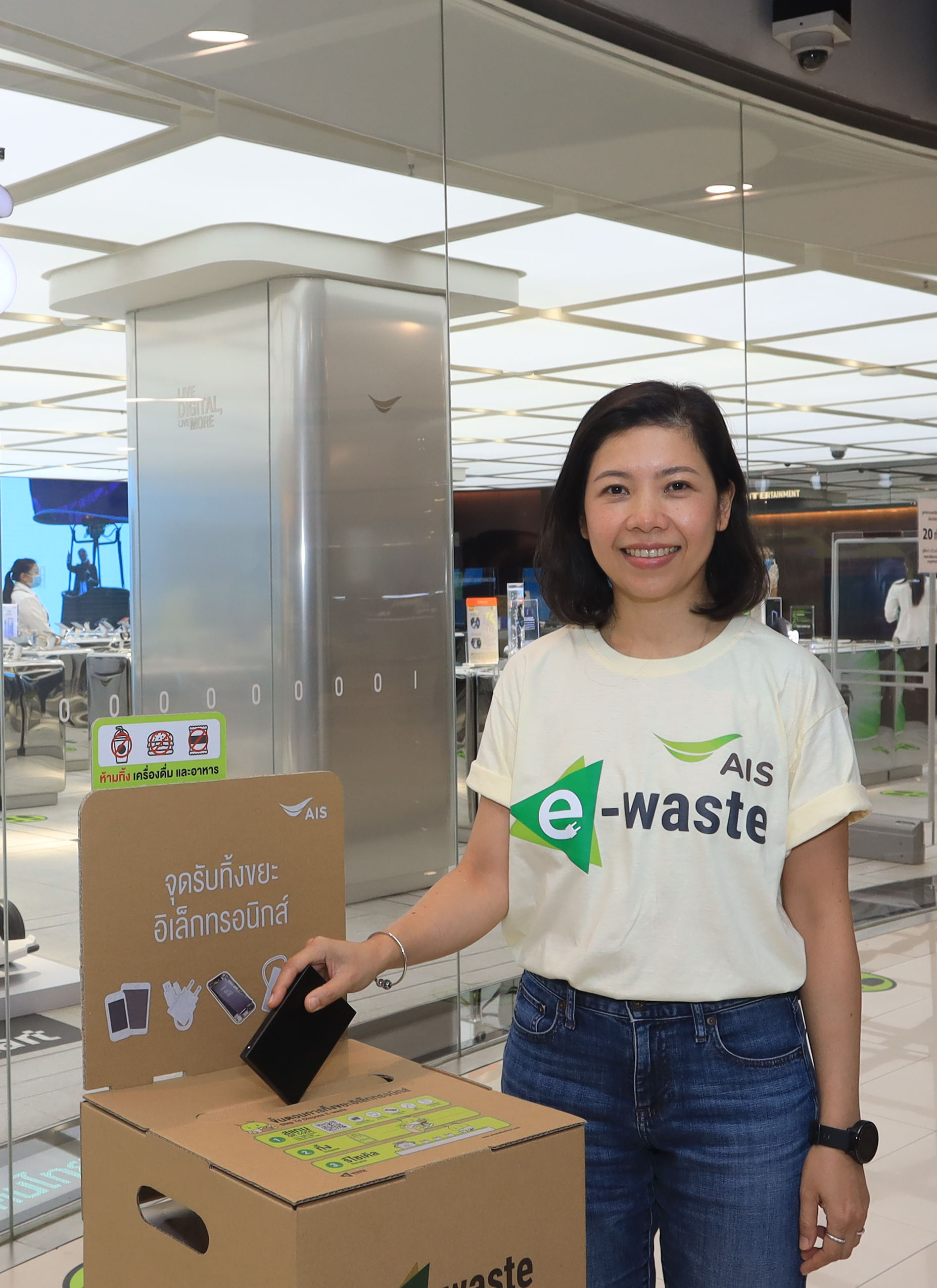นางสาวนัฐิยา พัวพงศกร หัวหน้าแผนกงานพัฒนาธุรกิจอย่างยั่งยืน บริษัท แอดวานซ์ อินโฟร์เซอร์วิส (ADVANC ) ผู้ให้บริการโทรศัพท์เคลื่อนที่ เอไอเอส กล่าวว่า AIS ได้สานต่อภารกิจเพื่อสิ่งแวดล้อม โดยขยายผลแคมเปญใหญ่ “คนไทยไร้ E-Waste” จับมือกับพันธมิตรทุกภาคส่วนทั่วประเทศ เพื่อสร้างการตระหนักรู้เรื่องภัยอันตรายที่แฝงมากับขยะอิเล็กทรอนิกส์ พร้อมขยายจุดรับทิ้งขยะทั่วประเทศ ให้คนไทยเข้าถึงจุดรับทิ้งขยะ E-Waste ได้ง่ายและใกล้บ้าน