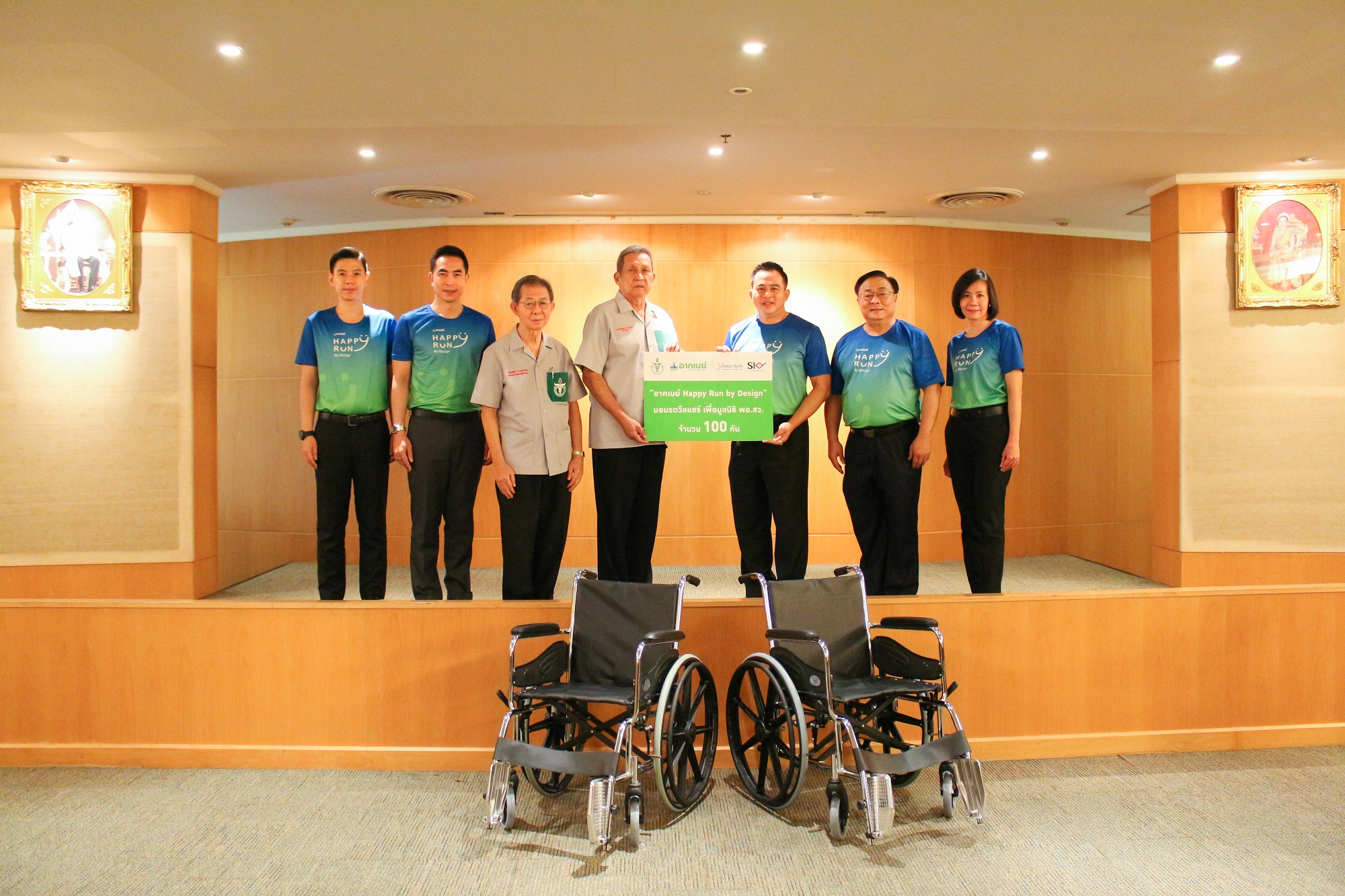 สิทธิเดช มัยลาภ ประธานเจ้าหน้าที่บริหาร บริษัท สกาย ไอซีที ( SKY ) (ที่ 2 จากซ้าย) ร่วมกับ สมชัย สัจจพงษ์ กรรมการ บริษัท เครือไทย โฮลดิ้งส์ (ที่ 3 จากขวา) และ อภิชัย บุญธีรวร รองประธานกรรมการบริหาร อาคเนย์ กลุ่มธุรกิจประกันและการเงิน (ที่ 2 จากขวา) มอบรถเข็นวิลแชร์ เพื่อมูลนิธิ พอ.สว. จำนวน 100 คัน โดยมีนายแพทย์ยุทธ โพธารามิก เลขาธิการมูลนิธิ พอ.สว. (กลาง) และทันตแพทย์สมนึก ชาญด้วยกิจ ผู้อำนวยการสำนักงานมูลนิธิ พอ.สว. (ที่ 3 จากซ้าย) เป็นผู้รับมอบ ณ มูลนิธิ พอ.สว. ในโครงการ HAPPY RUN BY DESIGN สุขใจที่ได้ “ให้” สุขกายที่ได้ “วิ่ง” โดยรายได้ไม่หักค่าใช้จ่ายบริจาคเข้ามูลนิธิ พอ.สว. เพื่อมอบรถเข็นวิลแชร์แก่ผู้พิการยากไร้ในถิ่นธุรกันดาร