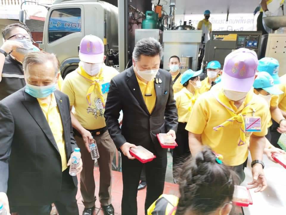 จากนั้น พลเอกณรงค์พันธ์ และนายสุภกิต ร่วมแจกจ่ายอาหารปรุงสุก พร้อมน้ำดื่มให้แก่พี่น้องประชาชนรวม 10,000 คน พื้นที่ 9 ชุมชน ใน 7 เขตกรุงเทพมหานคร โดยได้รับการสนับสนุนวัตถุดิบในการปรุงอาหารจาก CP และ CPF ประกอบด้วย เนื้อไก่สด 1,300 กิโลกรัม ไข่ไก่ 11,000 ฟอง ข้าวสาร 1,000 กิโลกรัม พร้อมกับน้ำดื่ม 10,000 ขวด