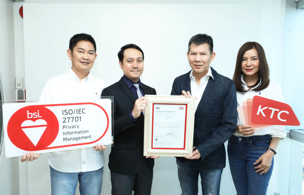ระเฑียร ศรีมงคล ประธานเจ้าหน้าที่บริหาร “เคทีซี” หรือ บริษัท บัตรกรุงไทย นำทีมรับมอบ 2 ใบรับรองมาตรฐานระบบบริหารจัดการข้อมูลส่วนบุคคล ISO/IEC 27701: 2019 และระบบบริหารจัดการความมั่นคงปลอดภัยสารสนเทศ ISO/IEC 27001: 2013 ต่อเนื่องเป็นปีที่ 2 ทั่วทั้งองค์กร ในฐานะสถาบันการเงินรายแรกและรายเดียวในประเทศไทย โดย บุคลากร ใจดี ผู้จัดการทั่วไปฝ่ายขายและการตลาด บริษัท บีเอสไอ กรุ๊ป (ประเทศไทย) ซึ่งเป็นสถาบันรับรองมาตรฐานแห่งชาติของประเทศอังกฤษ ให้เกียรติมอบใบรับรองฯ ณ ห้องประชุม “เคทีซี” อาคารสมัชชาวาณิช 2