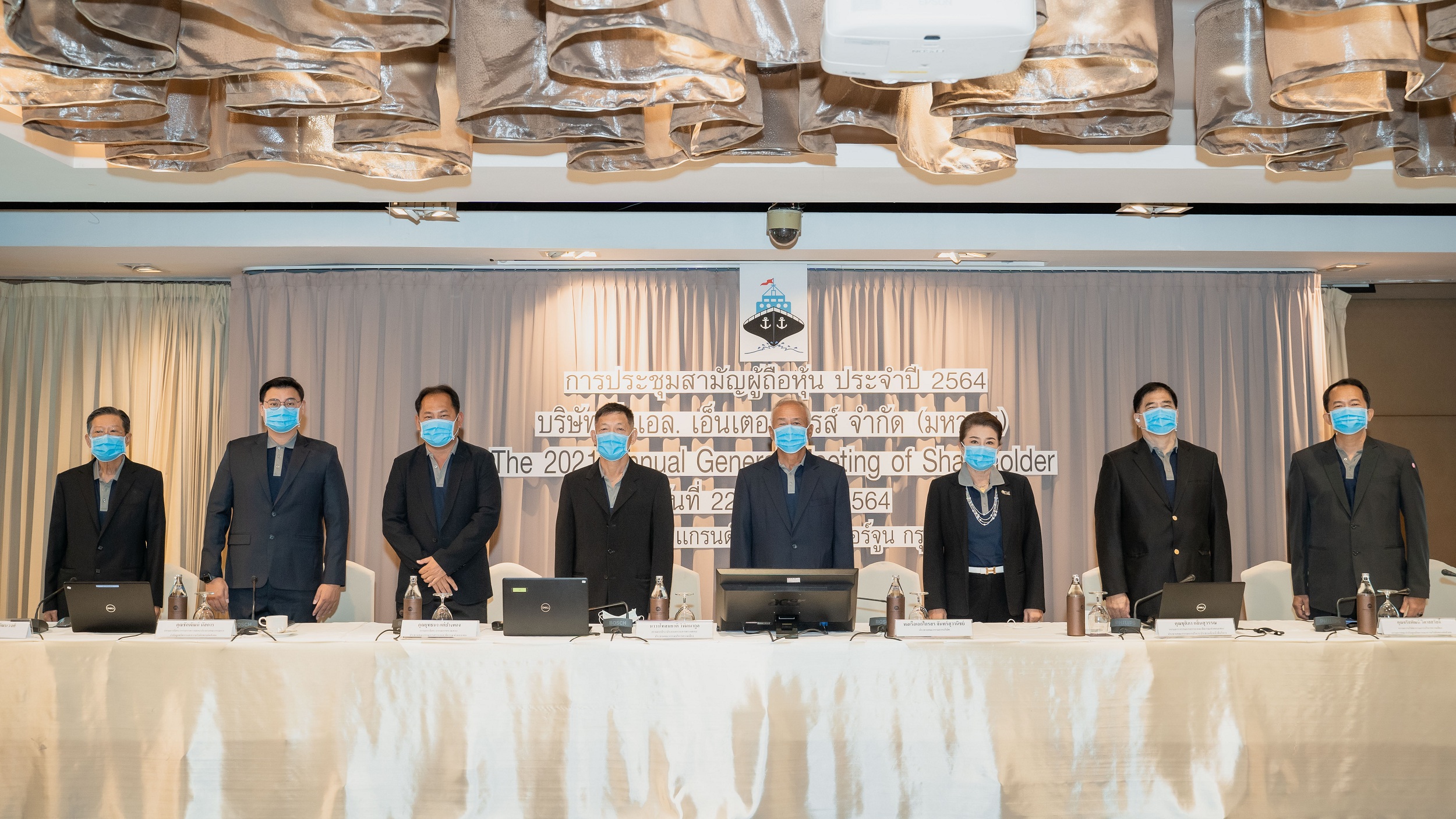 พลเรือเอกไกรสร จันทร์สุวานิชย์ (ที่ 4 จากขวา) ประธานกรรมการ ร่วมด้วย ชุติภา กลิ่นสุวรรณ (ที่ 3 จากขวา) ประธานเจ้าหน้าที่บริหาร พร้อมด้วยคณะกรรมการ บมจ. วี.แอล. เอ็นเตอร์ไพรส์ (VL) จัดประชุมสามัญผู้ถือหุ้นประจำปี 2564