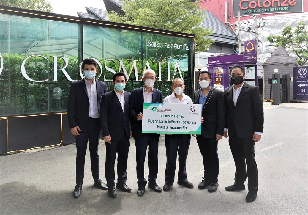 นายแพทย์ อำนาจ เอื้ออารีมิตร (ที่ 3 จากซ้าย) พร้อมผู้บริหารบริษัท เอกชัยการแพทย์ ( EKH) นำทีมแพทย์ พยาบาล และเจ้าหน้าที่ โรงพยาบาลเอกชัย ให้บริการฉีดวัคซีนทางเลือก ซิโนฟาร์ม แก่ผู้บริหารและพนักงาน โรงแรมครอสมาเทีย เพื่อเป็นการสร้างภูมิคุ้มกันและป้องกันการติดเชื้อไวรัสโควิด-19 แก่บุคลากรของบริษัทจำนวนกว่า 500 คน โดยมีคณะผู้บริหารให้การต้อนรับ เมื่อเร็ว ๆ นี้