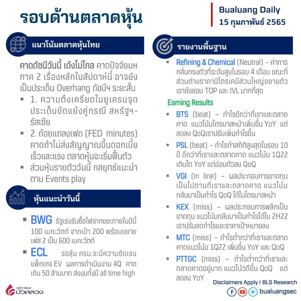 “บล.บัวหลวง” คาดดัชนีเด้งไม่ไกล ชี้เป้า BWG-ECL