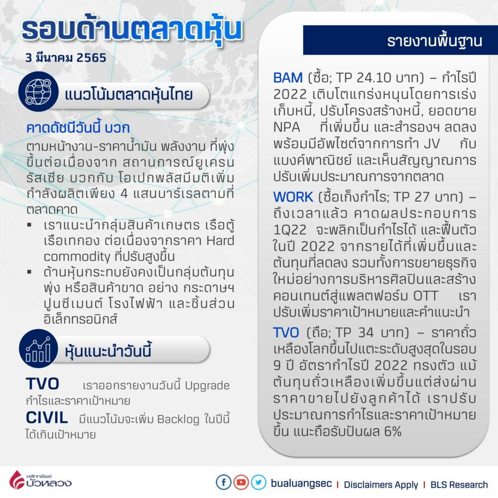 “บล.บัวหลวง” คาดหุ้นบวกตามตปท. ชี้เป้า TVO-CIVIL