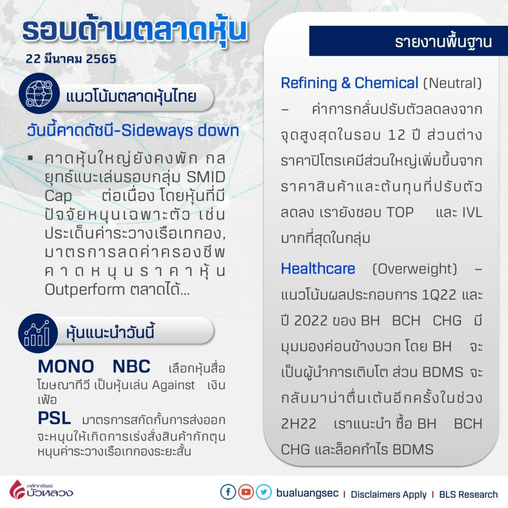บล.บัวหลวงคาดหุ้น Sideways down แนะ MONO-NBC-PSL 22/03/2022 09:33009Breaking News Facebook iconFacebookTwitter iconTwitterLINE iconLine