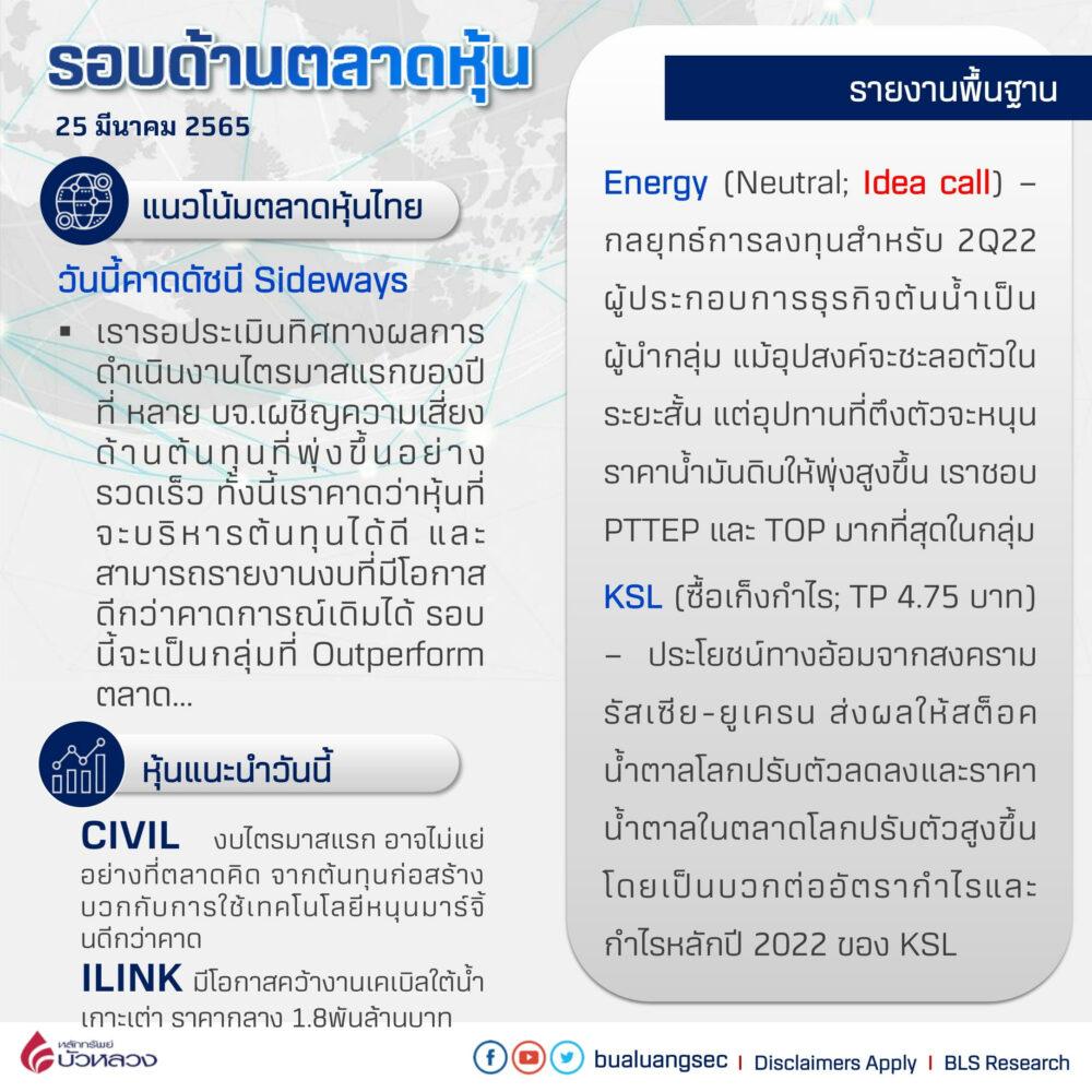 “บล.บัวหลวง” คาดดัชนี Sideways ชี้เป้า CIVIL-ILINK