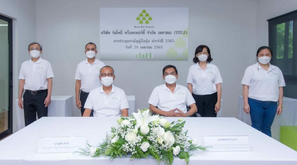 สุวิช ล่ำซำ ประธานกรรมการ , ศศิพงษ์ ปิ่นแก้ว ประธานเจ้าหน้าที่บริหารร่วม บริษัท ร่มโพธิ์ พร็อพเพอร์ตี้ (TITLE) หรือ พร้อมด้วยคณะกรรมการบริษัทฯ ถ่ายภาพร่วมกันหลังการประชุมสามัญผู้ถือหุ้นประจำปี 2565 ซึ่งเป็นการนำเสนอข้อมูลผลดำเนินงานปีที่ผ่านมา ผ่านการจัดในรูปแบบระบบ Online หรือ E-AGM โดยที่ประชุมอนุมัติเป็นเอกฉันท์ผ่านทุกวาระ ทั้งนี้ บริษัทฯมั่นใจว่าแนวโน้มในปีนี้จะดีขึ้นอย่างต่อเนื่อง จากสถานการณ์โควิด 19 เริ่มคลี่คลาย และจำนวนนักท่องเที่ยวต่างชาติที่เพิ่มมากขึ้น และเตรียมพร้อมเปิดโครงการใหม่ The TITLE หาดในยาง เฟส3 (Halo 1) มูลค่า 1,600 ล้านบาท งานดังกล่าวจัดขึ้น ณ ห้องประชุมของบริษัทฯ