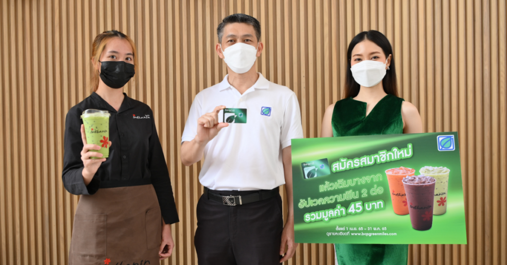 บริษัท บางจาก คอร์ปอเรชั่น (BCP) จัดกิจกรรมช่วยลดค่าใช้จ่ายในชีวิตประจำวัน เพียงสมัครสมาชิกบางจากกรีนไมลส์และลงทะเบียนรับสิทธิ์ร่วมรายการ แล้วเติมน้ำมันบางจาก E20 S EVO , E85 S EVO หรือ Hi Premium Diesel S B7 สะสมครบ 1,000 บาทขึ้นไป รับโค้ดส่วนลดมูลค่า 25 บาท สำหรับซื้อเครื่องดื่มอินทนิลเมนู โกโก้เย็น ชาไทยลาเต้เย็น และชาเขียวลาเต้เย็น ตั้งแต่วันนี้ – 31 พ.ค. 65 ใช้สิทธิ์ที่ร้านกาแฟอินทนิลทั่วประเทศได้ตั้งแต่ 15 พ.ค. 65 – 30 มิ.ย. 65 นอกจากนั้นสมาชิกใหม่ที่รูดใช้บัตรครั้งแรกจะได้รับทันที 100 คะแนน มูลค่า 20 บาท