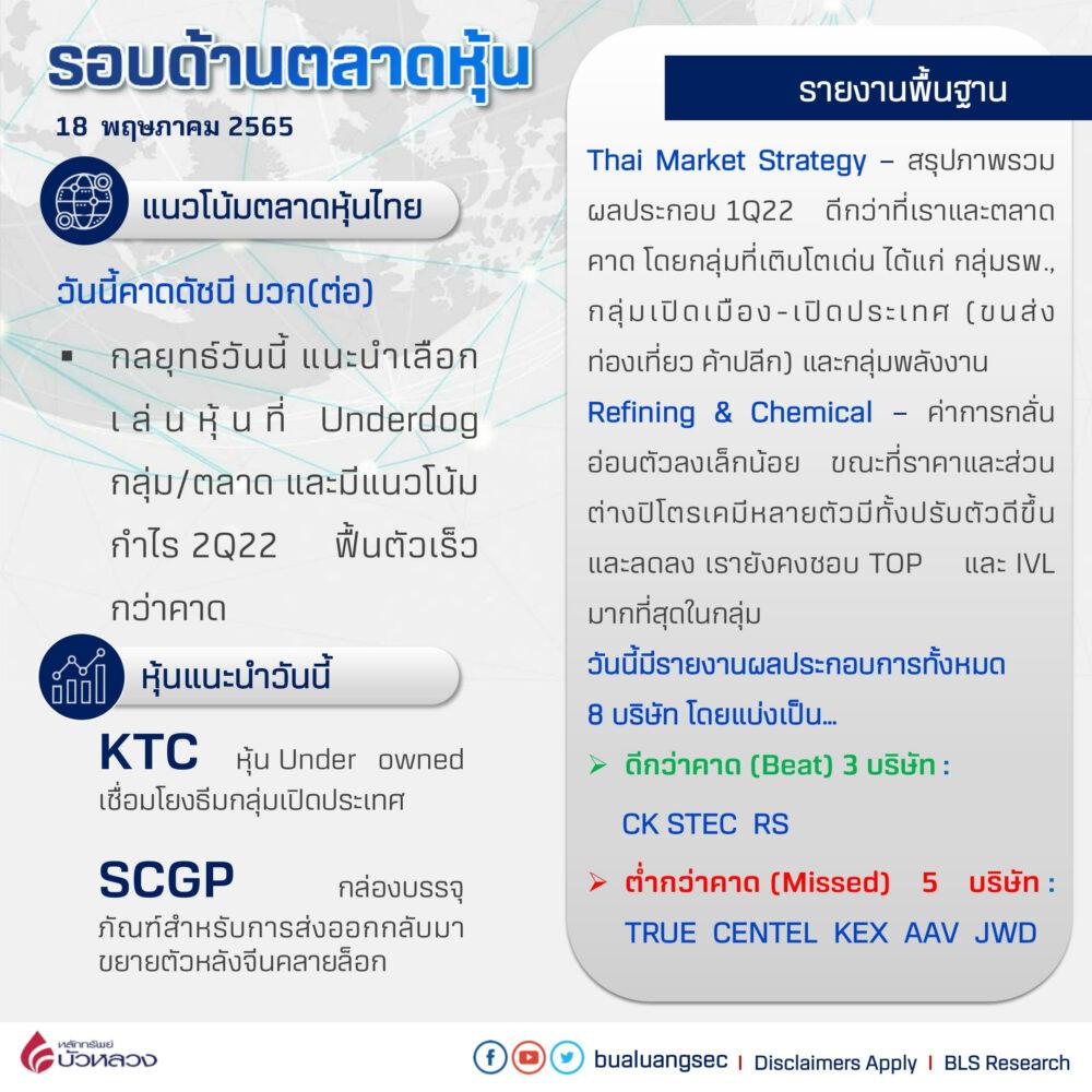 “บล.บัวหลวง” คาด SET บวกต่อ ชี้เป้า KTC-SCGP