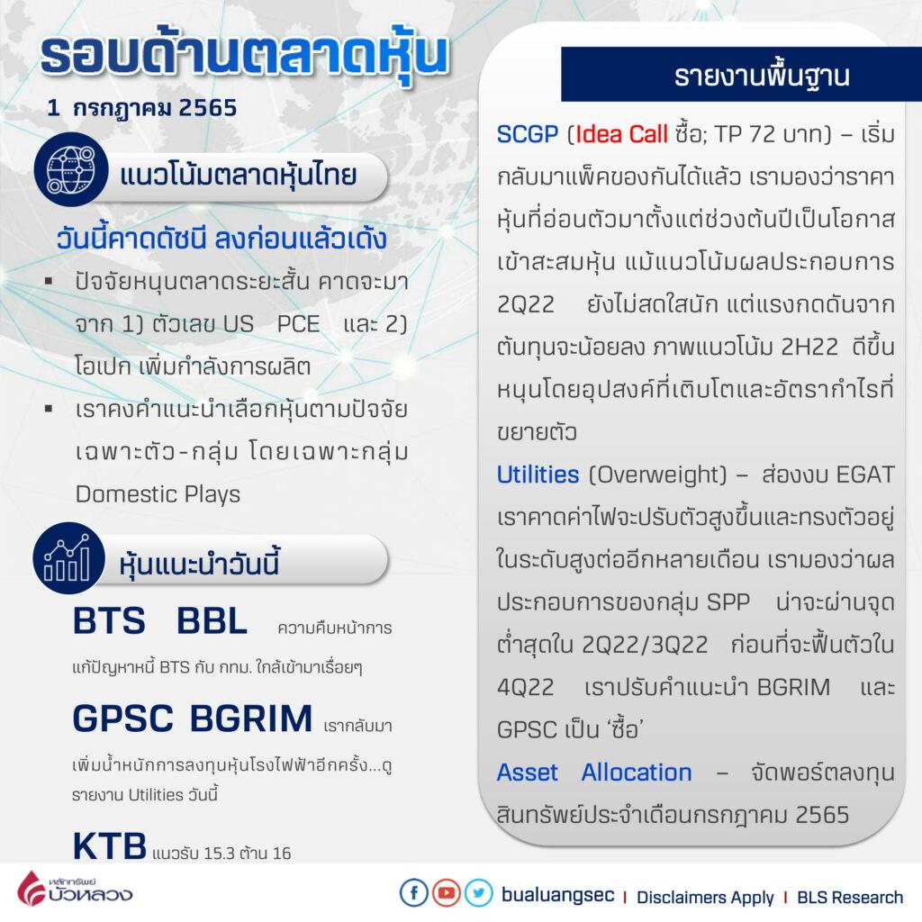 บล.บัวหลวงคัดหุ้นเด่นแนะ BTS-BBL-GPSC-BGRIM-KTB