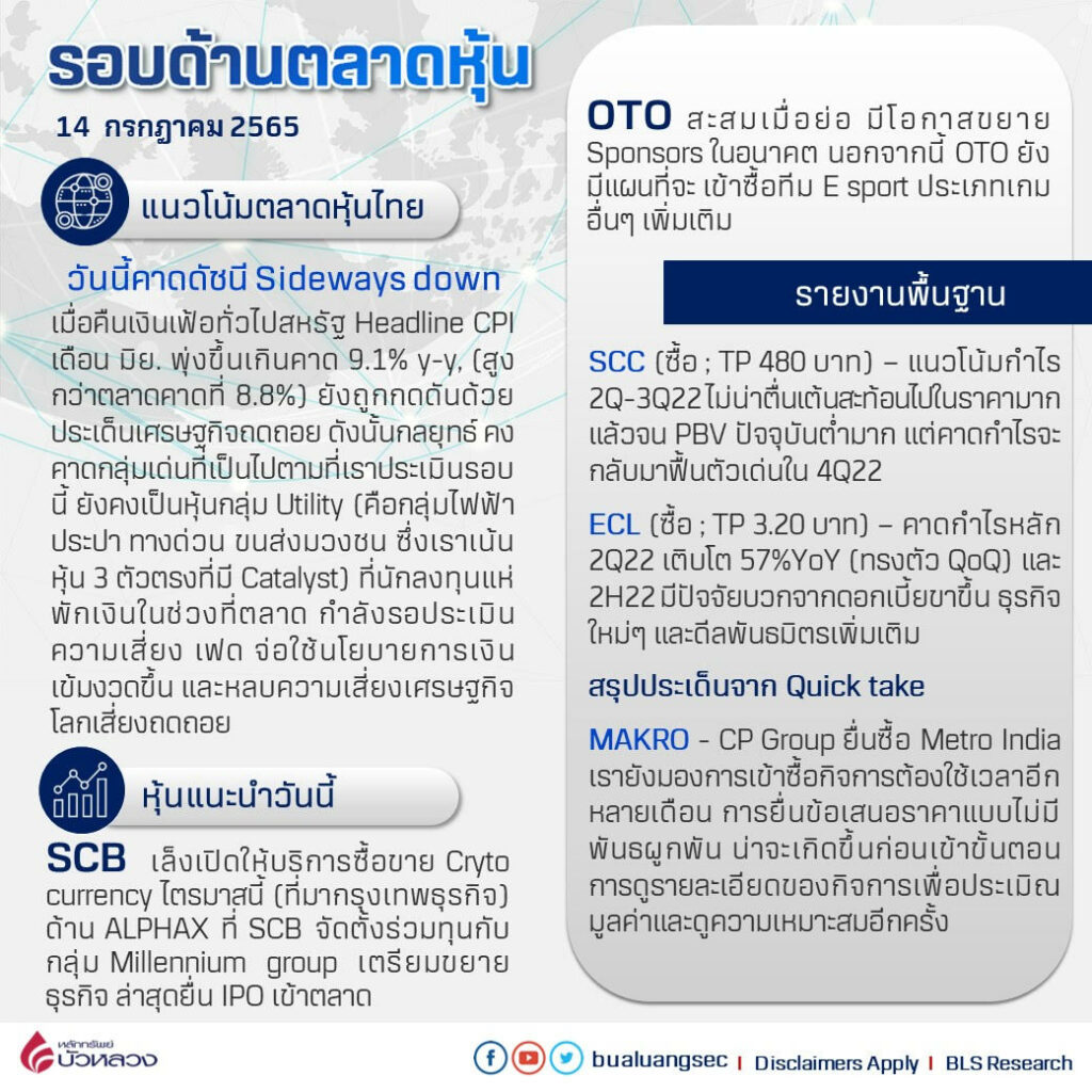 บล.บัวหลวงแนะหุ้นกลุ่ม Utility รอประเมินความเสี่ยงนโยบายเฟด 14/07/2022 09:41009Breaking News Facebook iconFacebookTwitter iconTwitterLINE iconLine