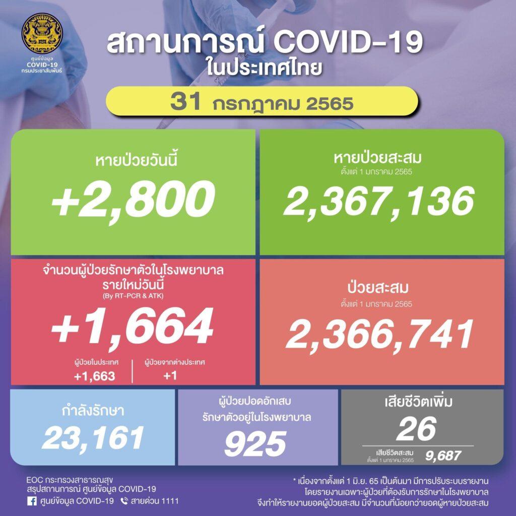หายป่วยสะสม 2,367,136 ราย (ตั้งแต่ 1 มกราคม 2565)