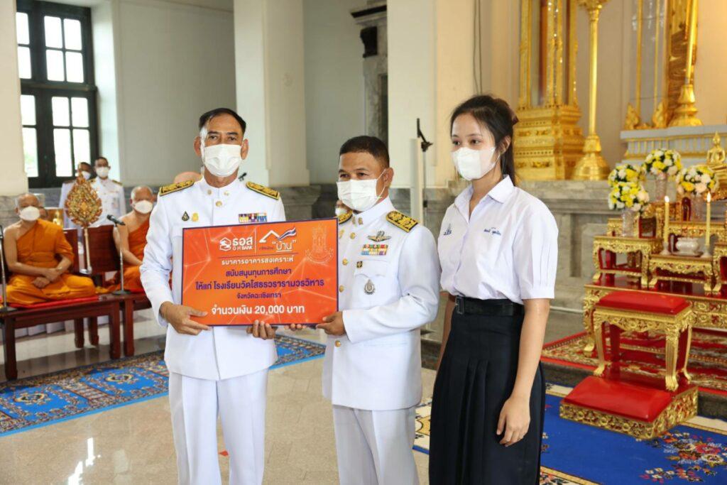 นอกจากนี้ ธนาคารยังมอบเงินสนับสนุนทุนการศึกษาเป็นจำนวนเงินรวมทั้งสิ้น 70,000 บาท ให้กับโรงเรียน 3 แห่ง ประกอบด้วย โรงเรียนพระปริยัติธรรมวัดโสธร วรารามวรวิหาร โรงเรียนวัดโสธร วรารามวรวิหาร และโรงเรียน บ้านหนองโสน จังหวัดฉะเชิงเทรา เพื่อช่วยเหลือเติมเต็มโอกาสทางการศึกษาให้แก่เยาวชนที่เรียนดีแต่ขาดแคลนทุนทรัพย์ โดยกิจกรรมดังกล่าวถือเป็นส่วนหนึ่งของนโยบายการแสดงความรับผิดชอบต่อสังคม (CSR) ของธนาคารในด้านการทำนุบำรุงพระพุทธศาสนา และการศึกษา โดยตลอดระยะเวลากว่า 69 ปี ธอส. ได้สร้างโอกาสให้คนไทยได้มีที่อยู่อาศัยเป็นของตนเองมาแล้วมากกว่า 4 ล้านครอบครัว พร้อมให้ความสำคัญกับการดำเนินกิจกรรม CSR เพื่อตอบแทนสังคม โดยคำนึงถึงการมีส่วนร่วมเพื่อสร้างความสัมพันธ์ที่ดีกับชุมชน และปลูกฝังความเป็นจิตอาสาช่วยเหลือสังคมให้แก่บุคลากรในองค์กร เพื่อร่วมกันสร้างสังคมไทยให้มีคุณภาพชีวิตที่ดีและเติบโตอย่างยั่งยืน