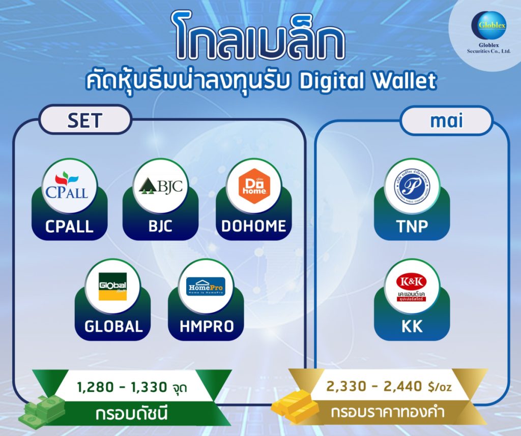 “โกลเบล็ก” ให้กรอบ 1,280-1,330 จุด ชูหุ้นค้าปลีกรับ Digital Wallet