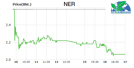 ทั้งนี้ หุ้น NER ปรับตัวลดลงตั้งแต่เปิดตลาดที่ 2.22 บาท ลดลง 0.36 บาท หรือ -13.95% แม้ราคาจะดีดกลับขึ้นไปได้และแตะสูงสุด 2.38 บาทในเวลาไม่นาน แต่ต้านแรงขายไม่ไหว กดราคาหุ้นร่วงต่อเนื่อง และลงต่ำสุดช่วงท้ายตลาด 2.04 บาท ก่อนปิดที่ราคา 2.06 บาท
