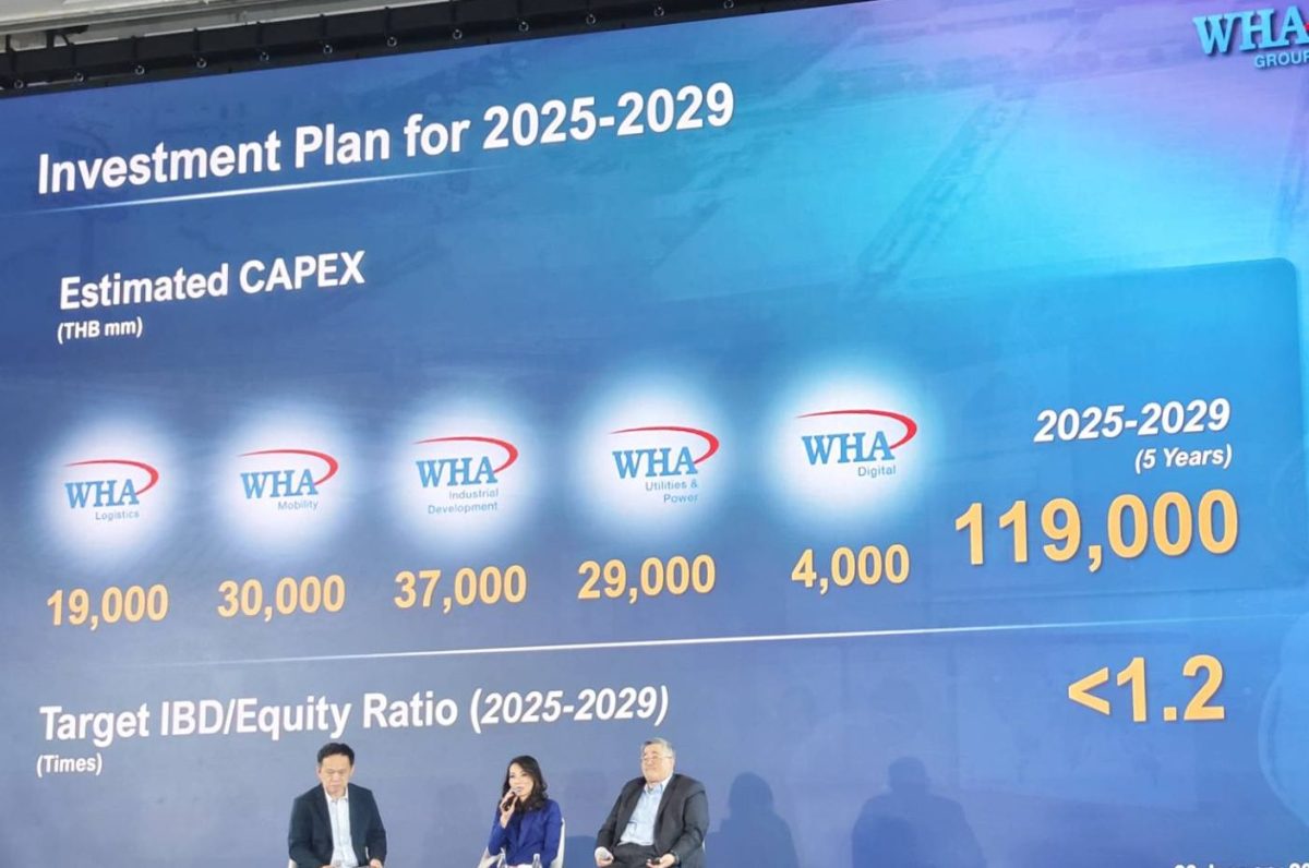 เงินลงทุนส่วนใหญ่จะถูกใช้ไปกับธุรกิจนิคมอุตสาหกรรม ใช้ 37,000 ล้านบาท ธุรกิจโมบิลิตี้ 30,000 ล้านบาท และธุรกิจสาธารณูปโภค น้ำ ไฟสะอาด 29,000 ล้านบาท เพื่อให้รายได้รวมปี 2572 แตะ 150,000 ล้านบาท เติบโตประมาณ 2.9 เท่าจากปี 2567 และมีอัตราส่วนหนี้สินสุทธิต่อทุนน้อยกว่า 1.2 เท่า
