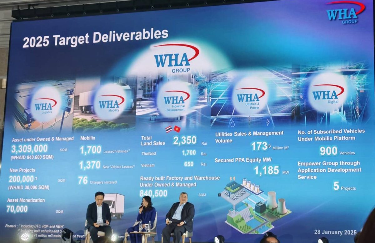 น.ส.จรีพร จารุกรสกุล ประธานคณะกรรมการบริหารและประธานเจ้าหน้าที่บริหารกลุ่มบริษัท ดับบลิวเอชเอ คอร์ปอเรชั่น (WHA) กล่าวว่า ปี 2568 คาดว่าจะสามารถสร้างรายได้และส่วนแบ่งกำไรกว่า 20,000 ล้านบาท เพิ่มขึ้น 35% จากปี 2567 ที่มีรายได้และส่วนแบ่งกำไร 14,400 ล้านบาท