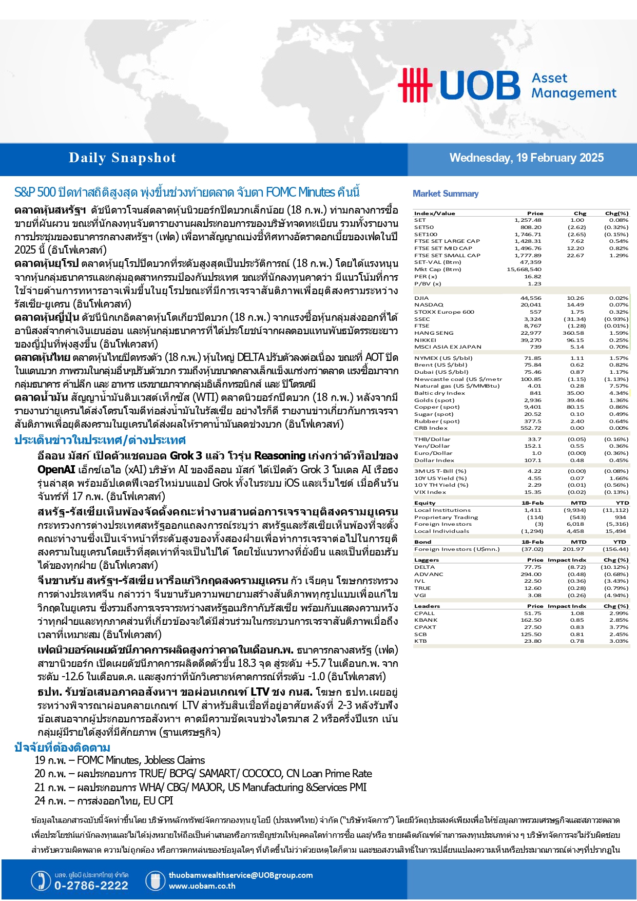S&P500 ปิดทำสถิติสูงสุด พุ่งขึ้นช่วงท้ายตลาด จับตา FOMC Minutes คืนนี้