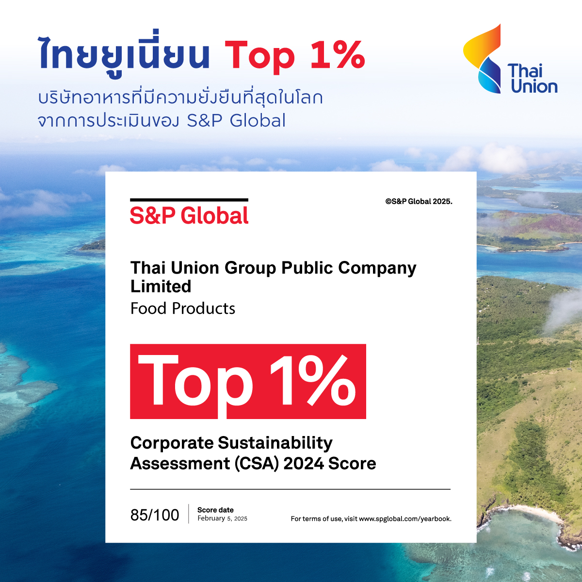 HoonSmart.com>> “ไทยยูเนี่ยน กรุ๊ป” (TU) ผู้นำอุตสาหกรรมอาหารทะเลระดับโลก ยังคงครองความเป็นหนึ่งในบริษัทที่มีความยั่งยืนที่สุดในอุตสาหกรรมผลิตภัณฑ์อาหารของโลก  ได้รับการจัดอันดับอยู่ในกลุ่ม Top 1% ของรายงาน S&P Global Sustainability Yearbook 2025
