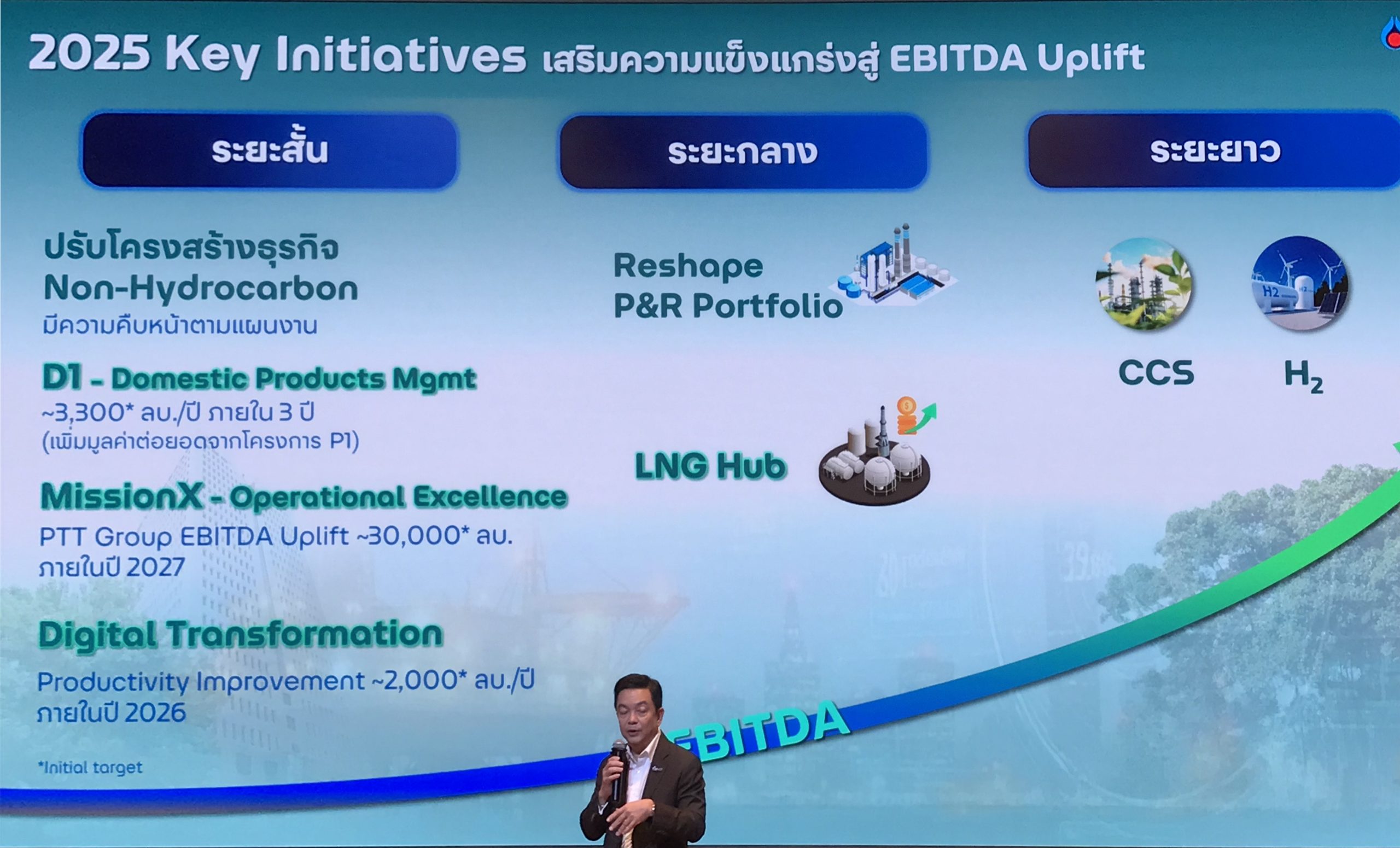 กลุ่มปตท.ตั้งเป้ากำไรก่อนหักดอกเบี้ย ภาษี ค่าเสื่อมราคา และค่าตัดจำหน่าย (EBITDA) เพิ่มขึ้น 30,000 ล้านบาท ภายใน 3 ปีหรือปี 2570 โดยมาจาก PTTจำนวน 10,000 ล้านบาท และบริษัทย่อยรวม 20,000 ล้านบาท ทำได้แน่นอน ปัจจุบันกลุ่มปตท.มีกระแสเงินสดประมาณ 4 แสนล้านบาท โดยมุ่งเน้นปรับโครงสร้างธุรกิจ นำเทคโนโลยีเข้ามาปรับใช้เพิ่มกำไร ลดต้นทุน รวมทั้งหาพาร์ทเนอร์ที่มีความเชี่ยวชาญเข้ามาเสริมแกร่ง ข้อดีของพันธมิตรบางธุรกิจมองว่าไม่ดี ก็ชวนกันออกก่อน รวมถึงยังลงทุนด้าน Digital Tranformation ด้านโครงสร้างพื้นฐาน เพิ่มประสิทธิภาพในการทำงาน โดยลงทุน 2,000 ล้านบาทต่อปีจนถึงปี 2569