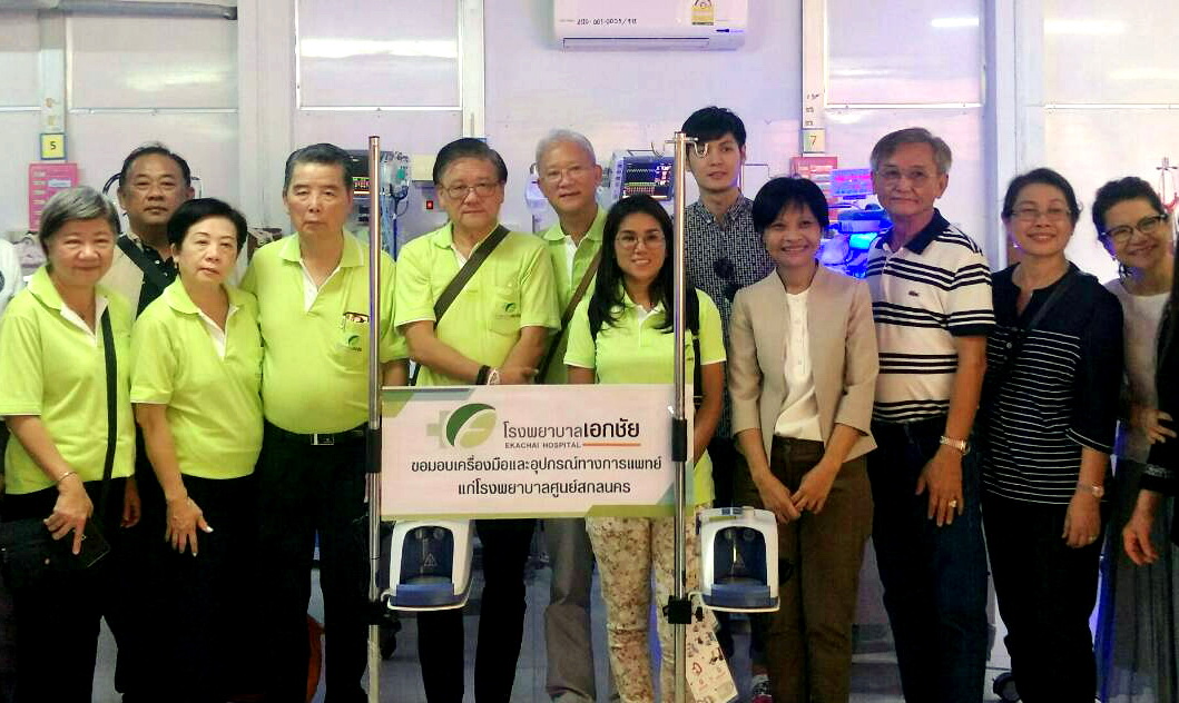 นพ. อำนาจ เอื้ออารีมิตร กรรมการและผู้อำนวยการโรงพยาบาล บริษัท เอกชัยการแพทย์ (EKH) พร้อมด้วย อำนวย เอื้ออารีมิตร กรรมการและประธานกรรมการบริหาร และทีมผู้บริหาร ร่วมบริจาคเครื่องมือและอุปกรณ์ทางการแพทย์ อาทิ เครื่อง High oxygen flow 2 เครื่อง, Intensive phototherapy 2 เครื่อง และ Syringe driver 2 เครื่อง รวมมูลค่า 800,000 บาท ให้แก่ โรงพยาบาลศูนย์สกลนคร