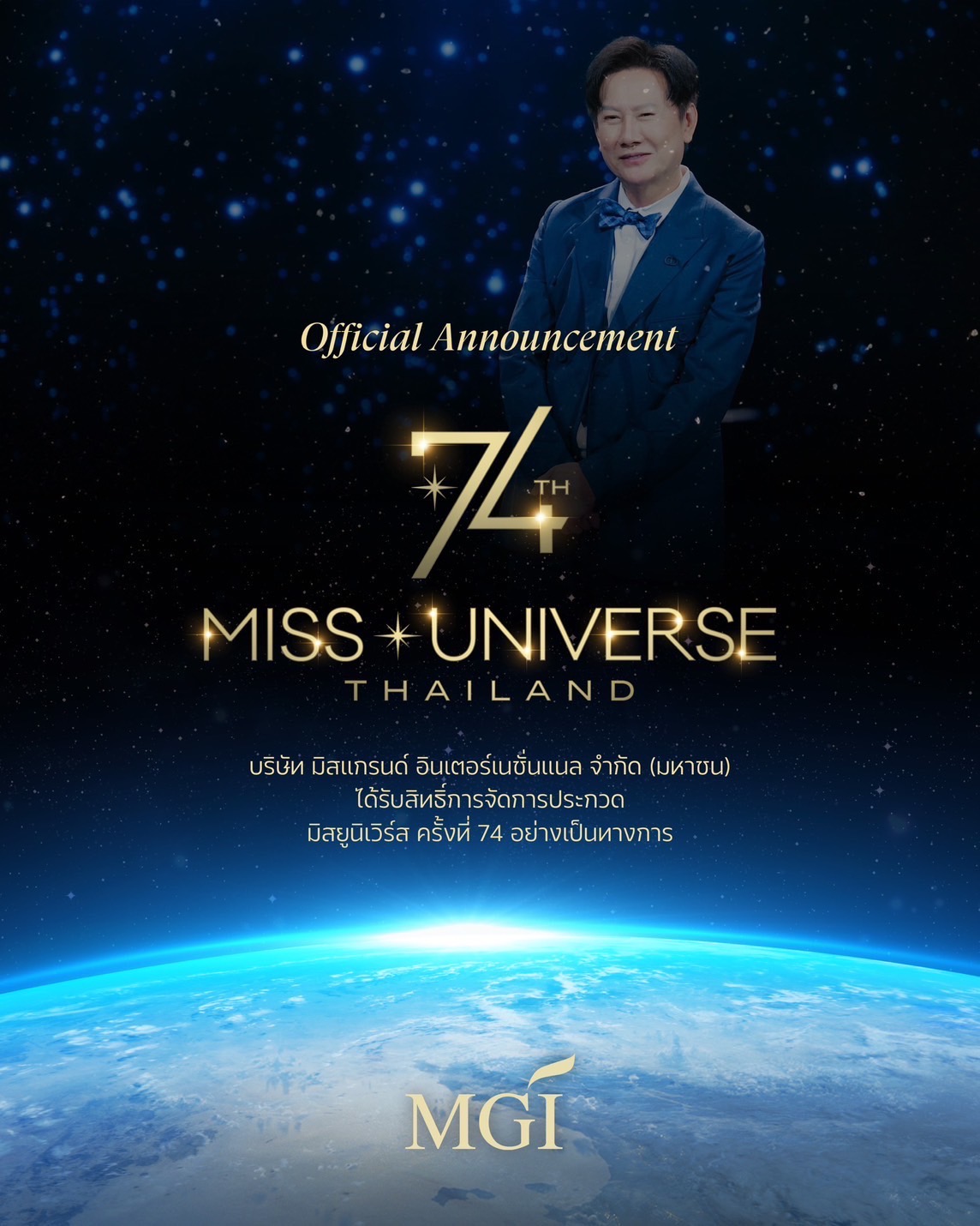 ภายหลังจากบริษัท มิสแกรนด์ อินเตอร์เนชั่นแนล (MGI) ได้รับสิทธิ์ แต่เพียงผู้เดียวจากองค์กร Miss Universe Organization ในการเป็นเจ้าภาพจัดการประกวด Miss Universe ครั้งที่ 74 รับผิดชอบในการเก็บตัวทำกิจกรรมต่าง ๆ การดูแลด้านการผลิตและการตลาด การจำหน่ายบัตร รวมถึงด้านอื่น ๆ อย่างครบวงจร ตลอดการจัดการประกวด มิสยูนิเวิร์ส ในประเทศไทย ในเดือนพฤศจิกายน ที่จะถึงนี้