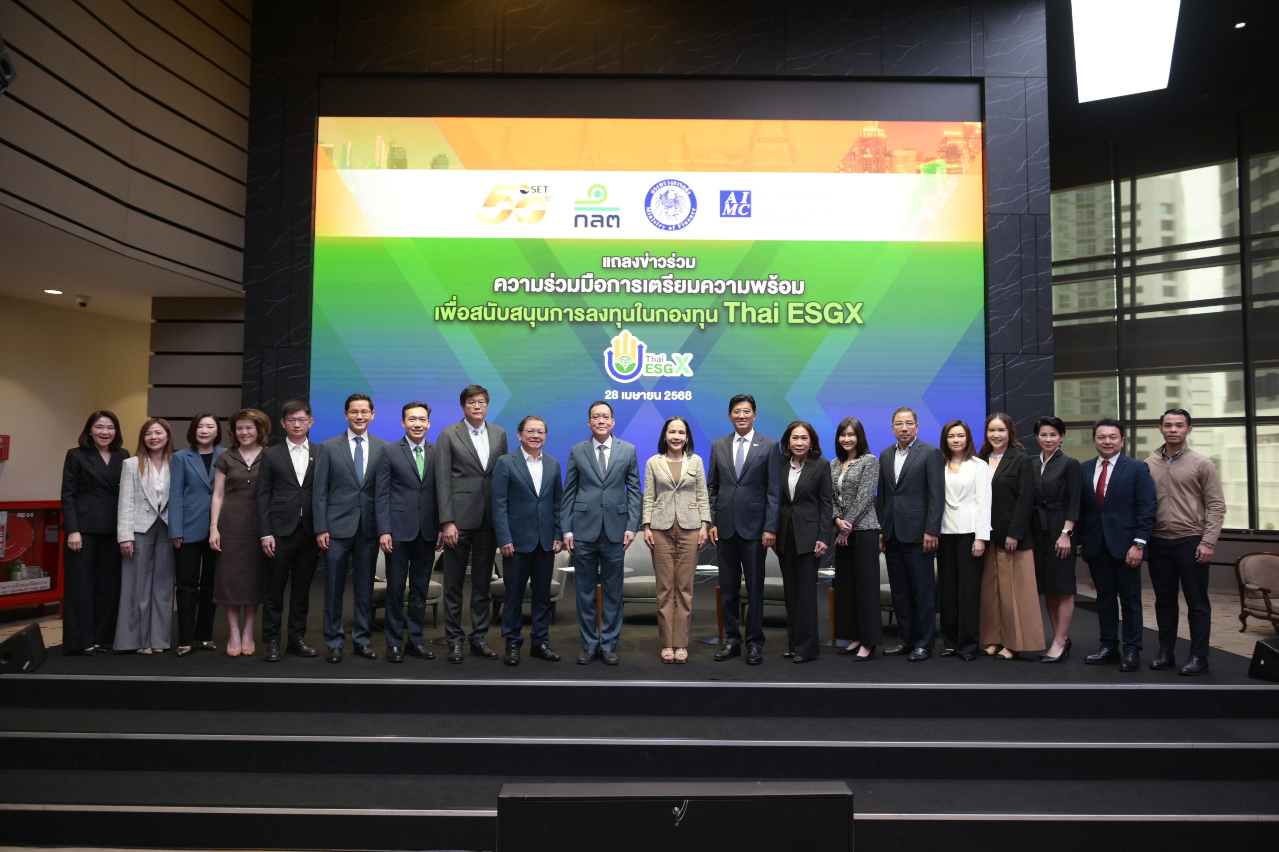 บลจ.ยูโอบี มีความยินดีตอบรับเข้าร่วมนโยบายที่ทางกระทรวงการคลัง และคณะรัฐมนตรี (ครม.) อนุมัติการจัดตั้งกองทุน Thai ESGX ล่าสุดผู้บริหารจาก บลจ.ยูโอบี นางสาวรัชดา ตั้งหะรัฐ กรรมการผู้จัดการอาวุโส สายพัฒนาธุรกิจ (ลำดับที่ 4 จากซ้าย) ร่วมกับสมาคมจัดการลงทุน (AIMC) พร้อมด้วย บลจ.ชั้นนำอื่นๆ ได้ร่วมกันเปิดตัวแคมเปญโปรโมทกองทุนรวมไทยเพื่อความยั่งยืนแบบพิเศษ (Thai ESGX) เพื่อส่งเสริมให้นักลงทุนได้ทราบถึงประโยชน์และโอกาสของการลงทุนในกองทุน Thai ESGX ณ อาคารตลาดหลักทรัพย์ฯ เมื่อวันอังคารที่ 28 เมษายน 2568