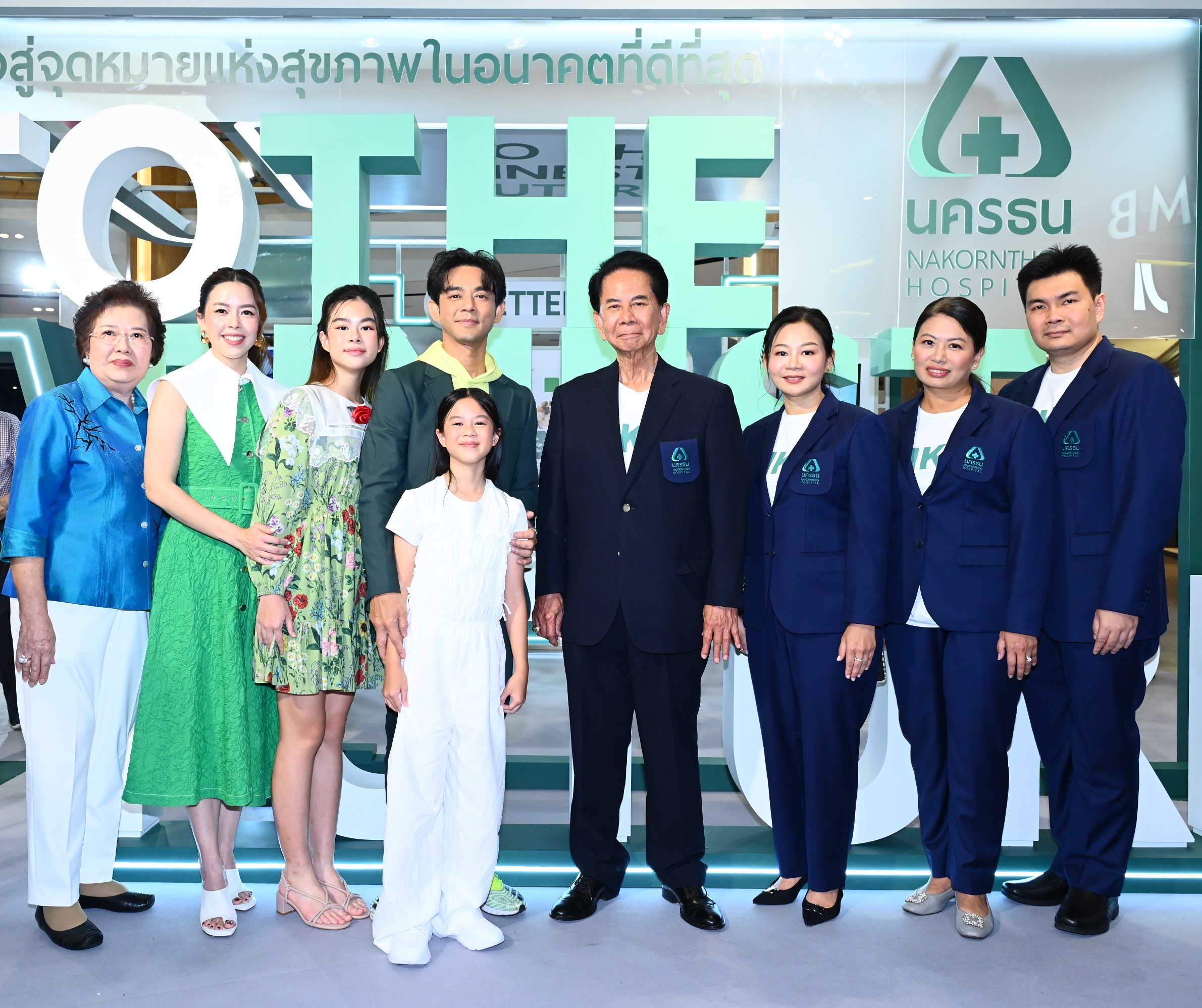 รศ.ญาณเดช ทองสิมา (กลาง) ประธานกรรมการบริษัท, ดร.วิศาล สายเพ็ชร์ (ที่ 3 จากซ้าย) ประธานเจ้าหน้าที่บริหาร, แพทย์หญิงศิเรมอร ทองสิมา (ที่ 3 จากขวา) ผู้อำนวยการสายงานแพทย์ และคณะผู้บริหาร บริษัท โรงพยาบาลนครธน (NKT) ถ่ายภาพร่วมกันในงานมหกรรมสุขภาพและความงาม “To The Finest Future : ก้าวสู่จุดหมายแห่งสุขภาพในอนาคตที่ดีที่สุด” ได้รับความสนใจจากคนรักสุขภาพเป็นจำนวนมาก ชูจุดเด่นด้านการรักษาโรคยากซับซ้อนตามมาตรฐานสากล