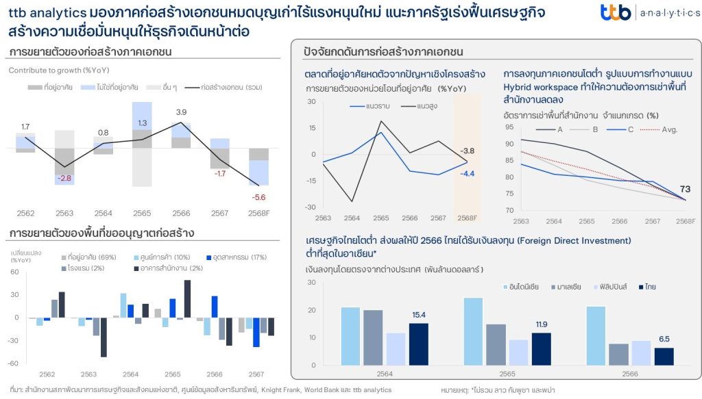 ttb analytics มองแรงส่งก่อสร้างเอกชนหมดแรง รัฐควรเร่งแก้ไขปัญหาสร้างแรงกระเพื่อมทางเศรษฐกิจให้เป็นรูปธรรม