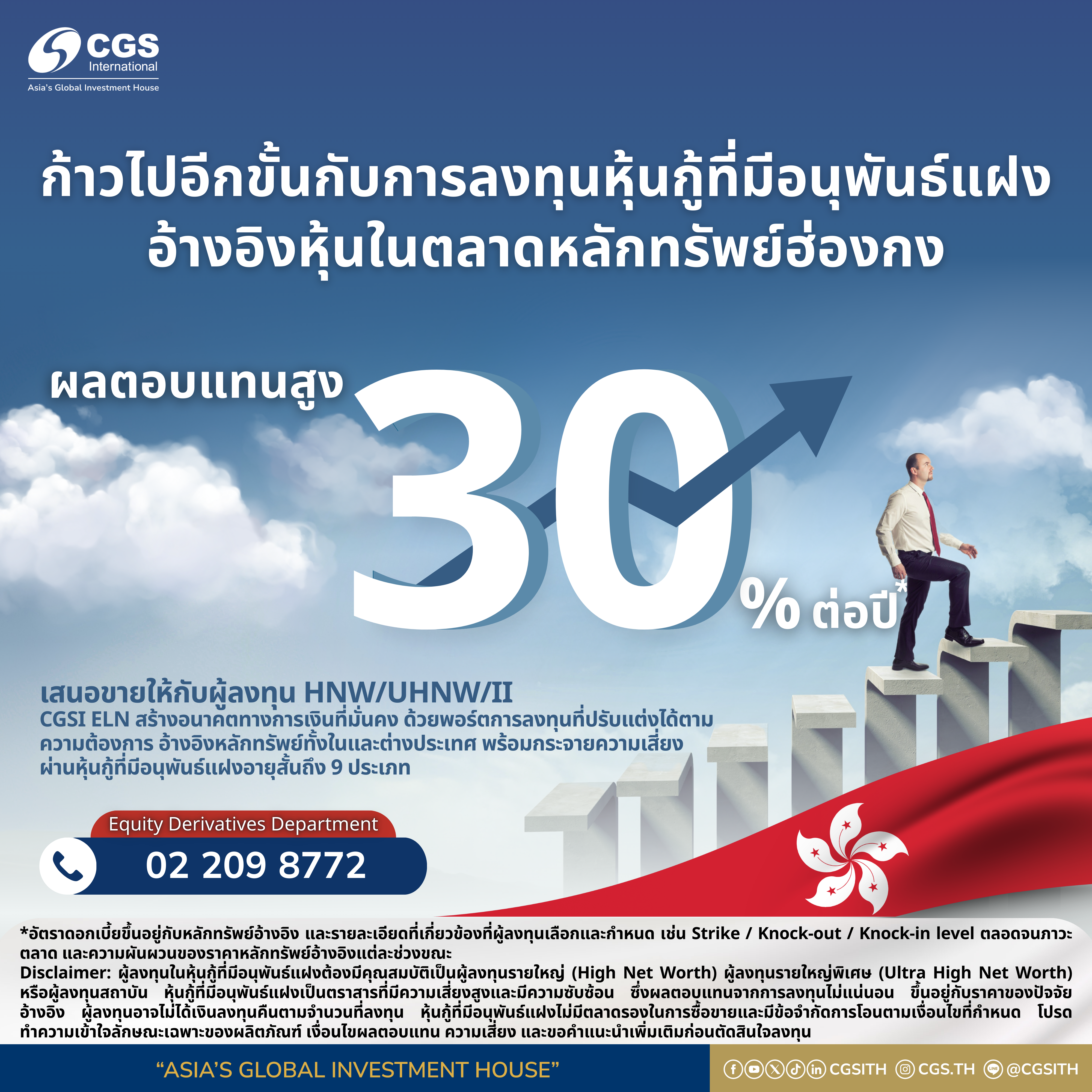 CGSI เชื่อว่า Structured Notes อ้างอิงหุ้นฮ่องกง จะตอบโจทย์นักลงทุนที่ต้องการสร้างผลตอบแทนที่เหนือกว่าผลิตภัณฑ์การเงินทั่วไปในตลาดหุ้นไทย และตอบโจทย์นักลงทุนที่เชื่อมั่นหุ้นฮ่องกง แต่ต้องการลดแรงกระแทกจากตลาดผันผวน เพราะ Structured Notes เป็นเครื่องมือที่ผสมผสานระหว่างโอกาสการลงทุนในหุ้นเติบโต และการบริหารความเสี่ยงผ่านโครงสร้างผลตอบแทนแบบมีเงื่อนไข จึงเหมาะสำหรับนักลงทุนที่ต้องการเพิ่มประสิทธิภาพพอร์ต โดยเฉพาะในภาวะที่ดอกเบี้ยเริ่มทรงตัว