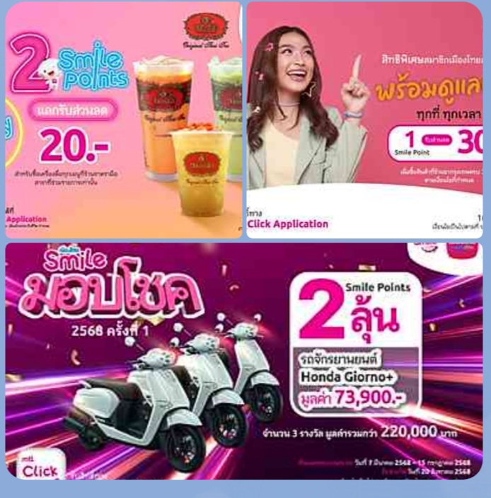 3. ลุ้นรางวัลใหญ่ ใช้ 2 Smile Points แลกคูปองชิงโชค 1 ใบ และอัปเดตข้อมูลเพื่อรับคูปองเพิ่มอีก 2 ใบ ร่วมลุ้นรถจักรยานยนต์ Honda Giorno+ รวม 3 รางวัล มูลค่ากว่า 220,000 บาท จับรางวัล 20 ส.ค. 2568