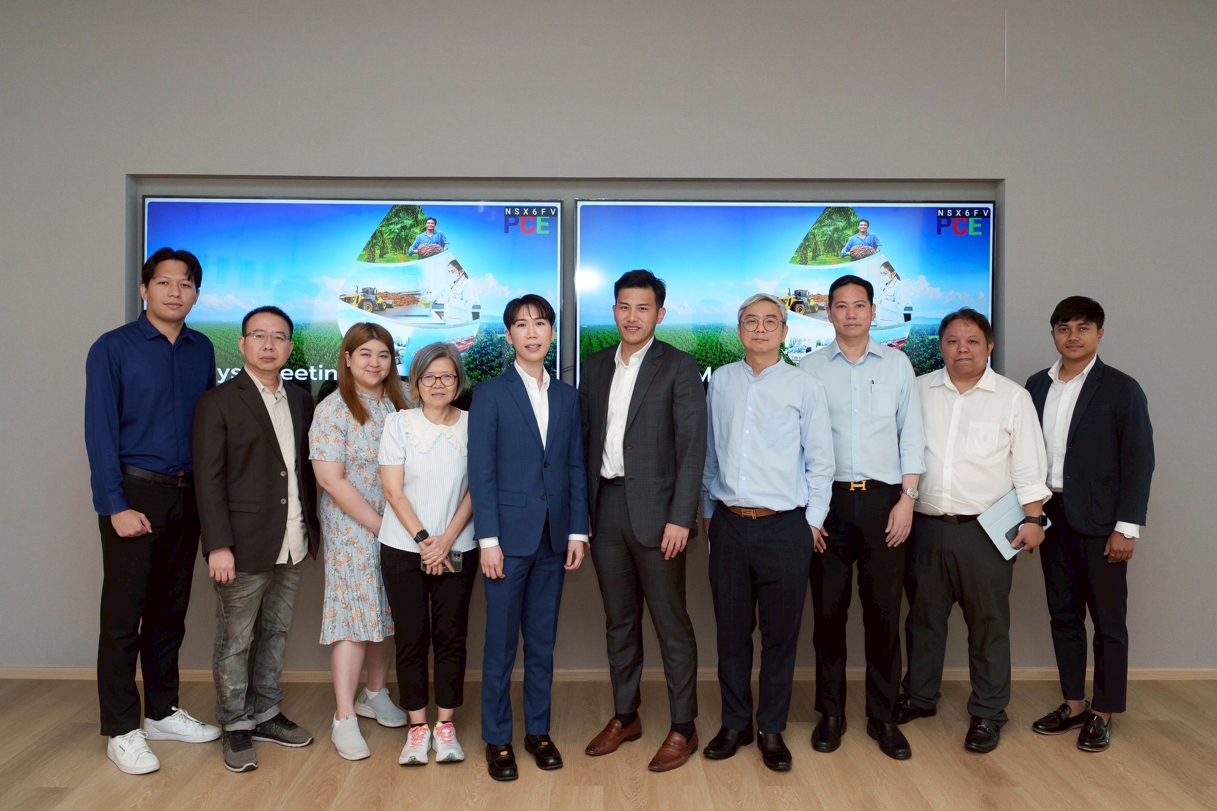 นายพรพิพัฒน์ ประสิทธิ์ศุภผล (ที่ 5 จากขวา) รองกรรมการผู้จัดการสายงานปฏิบัติการ พร้อมด้วยนายกีรติ ไชยะกุล (ที่ 5จากซ้าย) ผู้อำนวยการอาวุโสสายงานบัญชีและการเงิน บริษัท เพชรศรีวิชัย เอ็นเตอร์ไพรส์ (PCE) ผู้นำอุตสาหกรรมน้ำมันปาล์มครบวงจร ที่มีความพร้อมการจัดการระบบซัพพลายเชน ร่วมถ่ายภาพกับนักวิเคราะห์หลักทรัพย์ภายหลังการจัดกิจกรรม Analyst Meeting