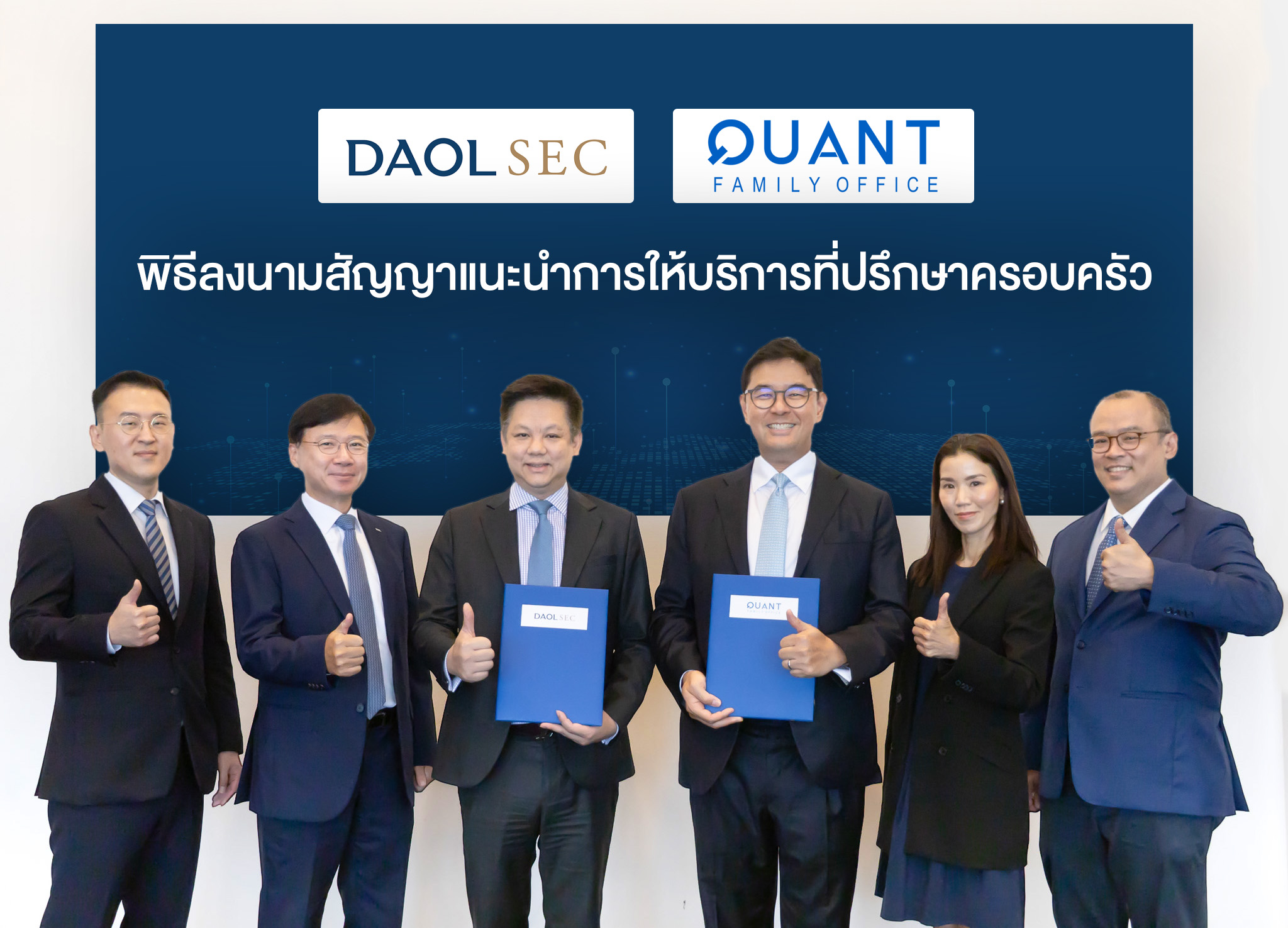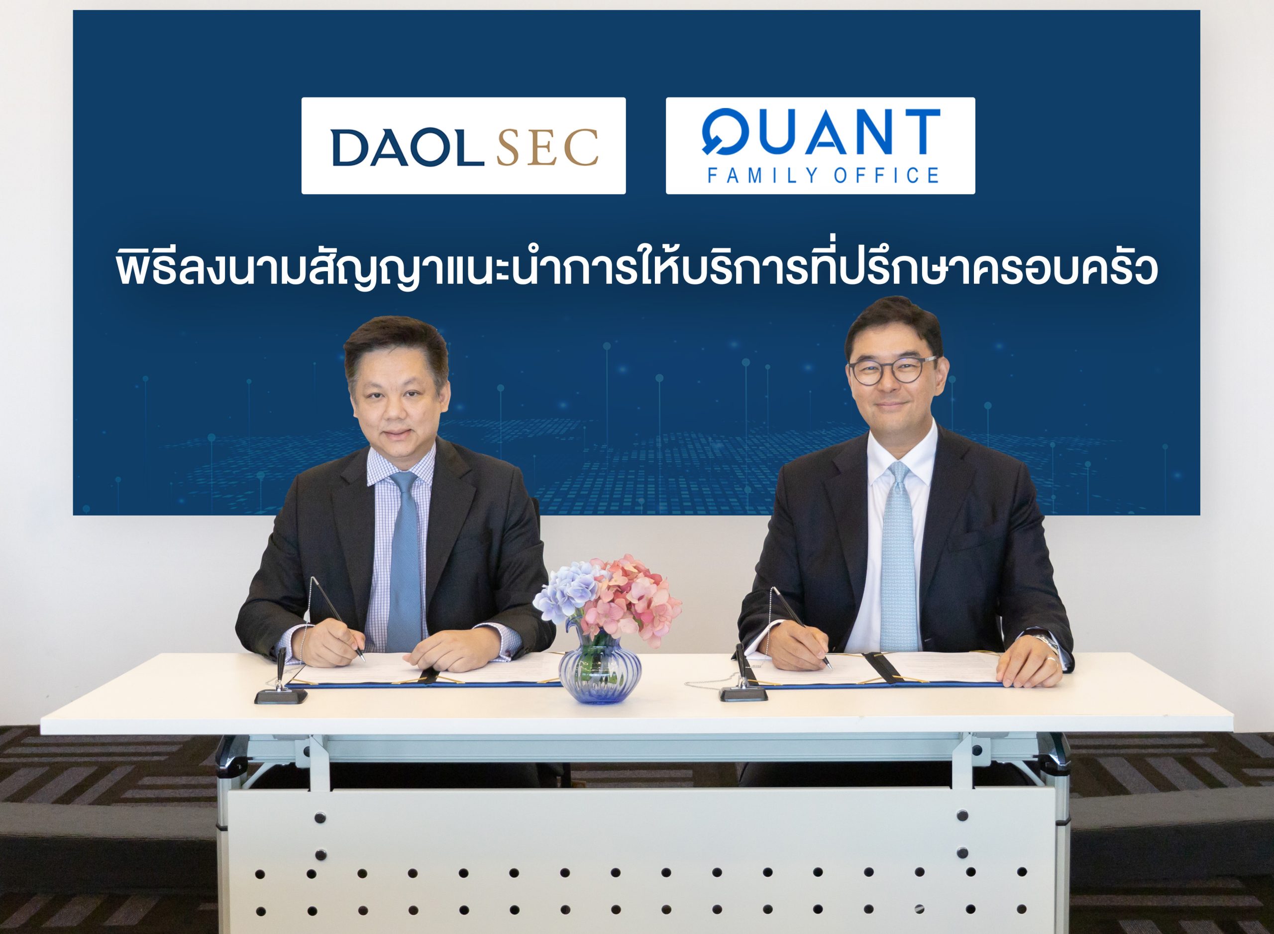 HoonSmart.com>> บล.ดาโอ เซ็นสัญญา “ควอนท์กรุ๊ป” ขยายธุรกิจการให้บริการที่ปรึกษาด้านการบริหารจัดการครอบครัว เพื่อส่งต่อความมั่งคั่งอย่างยั่งยืนของธุรกิจครอบครัวสู่ทายาท
