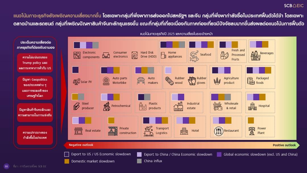 HoonSmart.com>>SCB EIC เตือน! เศรษฐกิจไทยยังไม่พ้นแรงกดดันคาดครึ่งหลังปี’68 โตต่ำกว่า 1% จากสงครามการค้า ภาษีสหรัฐฯ และกำลังซื้อในประเทศที่ยังอ่อนแรง ภาระหนี้ครัวเรือนสูง แม้อัตราดอกเบี้ยลด แต่กระตุ้นได้ต่ำ ย้ำ 6 กลุ่มธุรกิจกระทบแรงสุด แนะเร่งสร้างความเชื่อมั่น