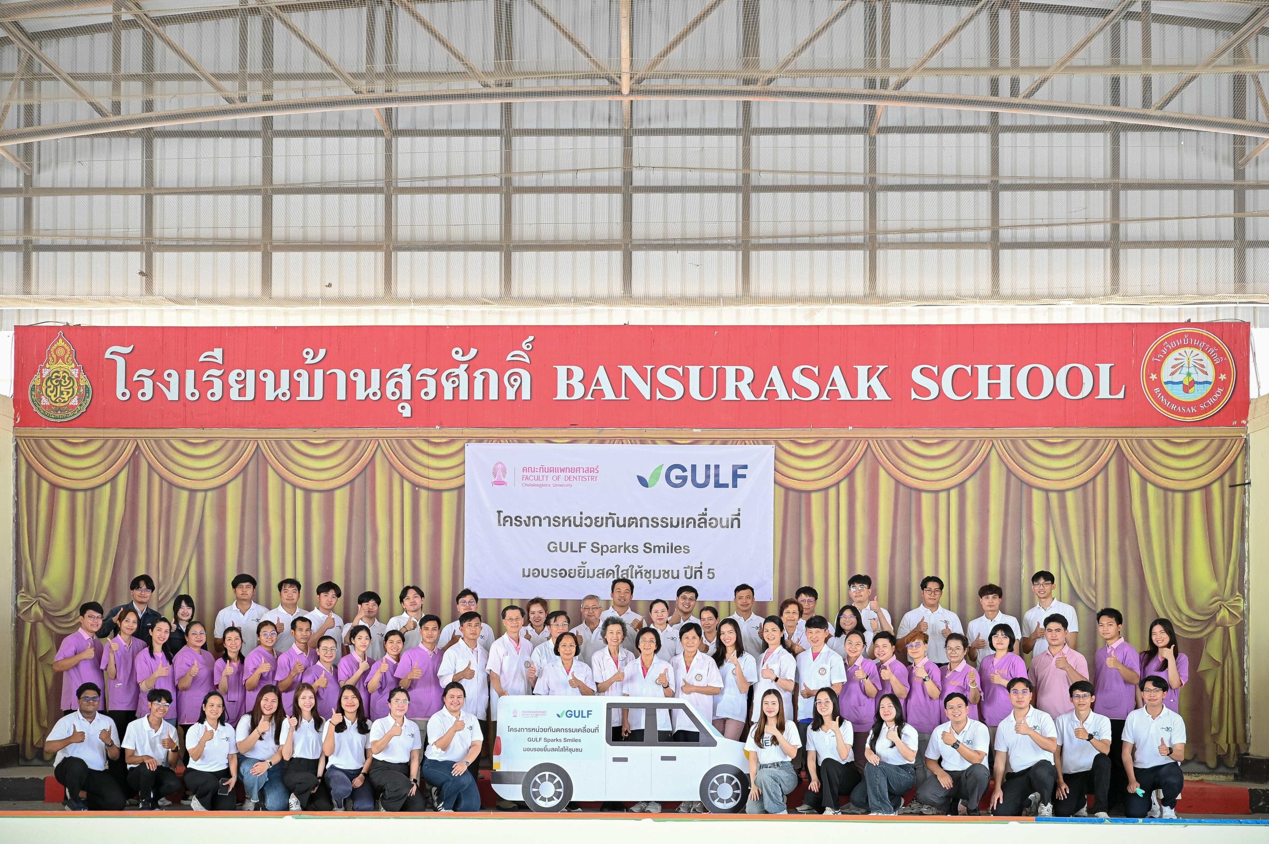 โครงการ “GULF Sparks Smiles มอบรอยยิ้มสดใสให้ชุมชน” ปีที่ 5 หน่วยที่ 3 ดำเนินการโดย บริษัท กัลฟ์ ดีเวลลอปเมนท์ จำกัด (มหาชน) หรือ กัลฟ์ ร่วมกับ คณะทันตแพทยศาสตร์ จุฬาลงกรณ์มหาวิทยาลัย ได้เดินทางออกหน่วยทันตกรรมเคลื่อนที่เพื่อให้บริการตรวจรักษาและทำฟันฟรีแก่ประชาชน อาทิ การอุดฟัน ถอนฟัน ขูดหินปูน เคลือบฟลูออไรด์ รวมถึงให้คำแนะนำด้านสุขภาพช่องปาก ณ โรงเรียนบ้านสุรศักดิ์ จ.ชลบุรี ระหว่างวันที่ 17-18 มิถุนายน 2568 โดยได้รับความสนใจและการตอบรับที่ดีจากประชาชนในพื้นที่และชุมชนใกล้เคียงที่ได้เข้ามารับบริการทันตกรรมฟรีอย่างต่อเนื่อง