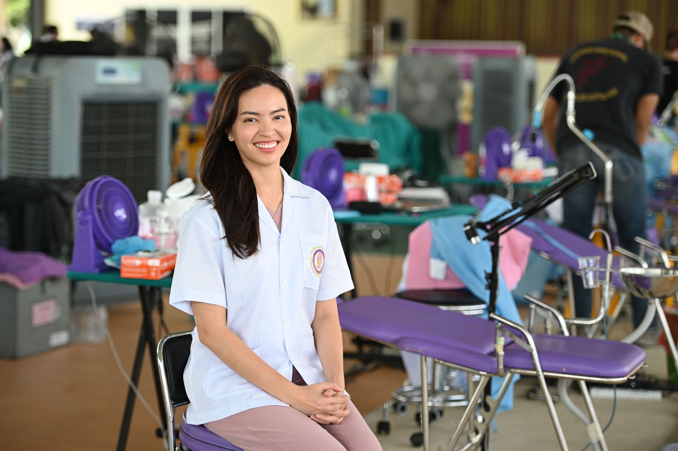 ทพญ.น้อมจิต วิทยพูม ทันตแพทย์จิตอาสา จ.ชลบุรี กล่าวว่า “วันนี้ในฐานะศิษย์เก่าทันตแพทย์จุฬาฯ และอยู่ที่จ.ชลบุรีอยู่แล้ว จึงได้มาเข้าร่วมโครงการ “Gulf Sparks Smiles” ออกหน่วยทันตกรรมเคลื่อนที่ โดยวันนี้ประจำอยู่ในจุดถอนฟัน ทำให้พบผู้ป่วยจำนวนมากที่มีปัญหาฟันติดเชื้อเพราะขาดความตระหนักในการดูแลช่องปาก โครงการนี้ทำให้ได้นำความรู้มาช่วยผู้คนให้หายเจ็บปวดและมีรอยยิ้มกลับคืนมาจริงๆ ซึ่งดีกว่าเพียงแค่การให้ความรู้ เพราะคือการแก้ปัญหาที่ตรงจุดและเป็นการนำวิชาชีพหมอฟันมาดูแลผู้คนอย่างแท้จริง รู้สึกดีใจที่ได้เป็นส่วนหนึ่งในการเปลี่ยนชีวิตและสุขภาพของชุมชนที่เข้าไม่ถึงบริการได้”