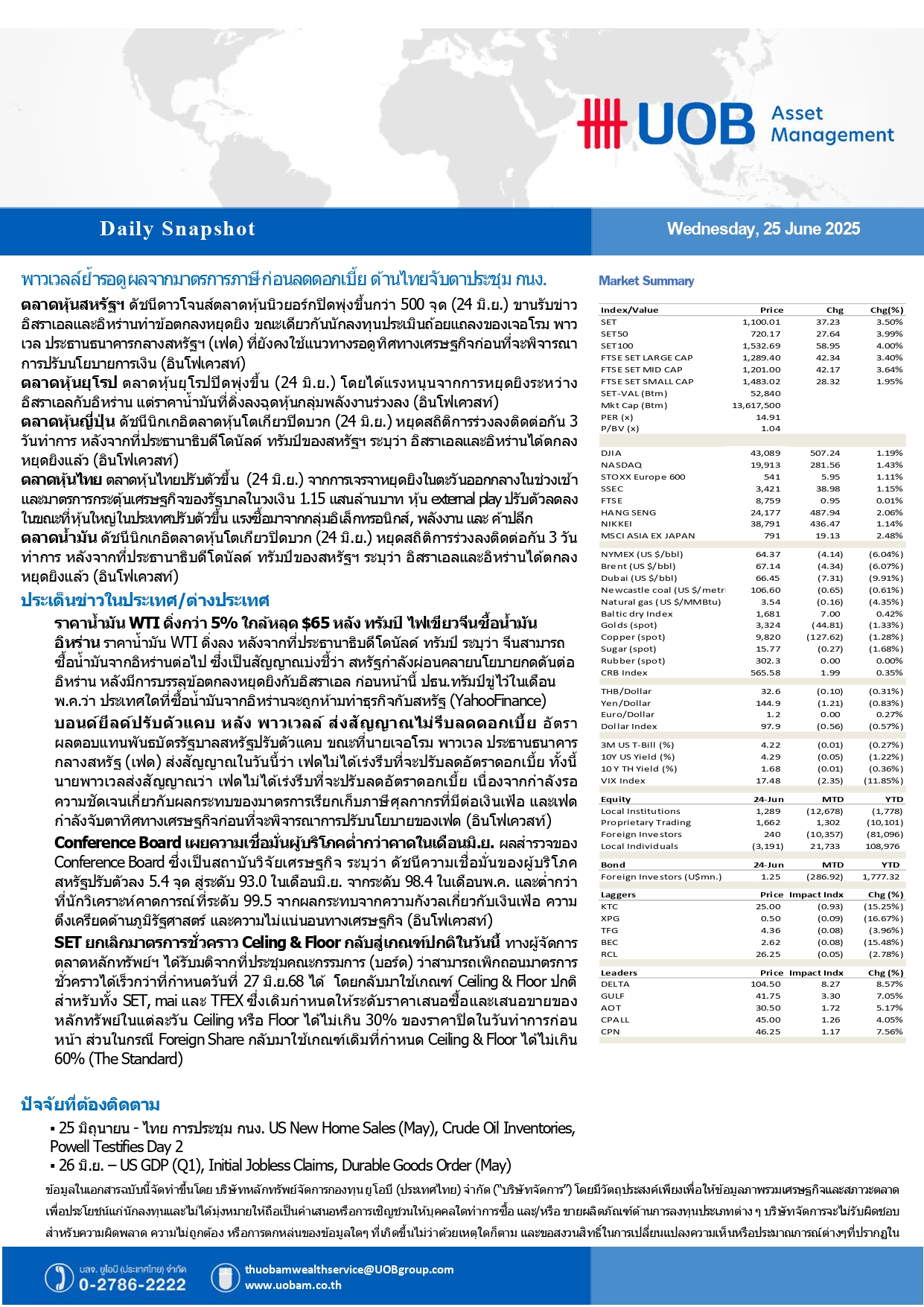 UOBAM Daily Snapshot : พาวเวลล์ย้ำรอดูผลจากมาตรการภาษี ก่อนลดดอกเบี้ย-ด้านไทยจับตาประชุมกนง. 25/06/2025 09:18009Breaking News, Fund Manager Facebook iconFacebookTwitter iconTwitterLINE iconLine