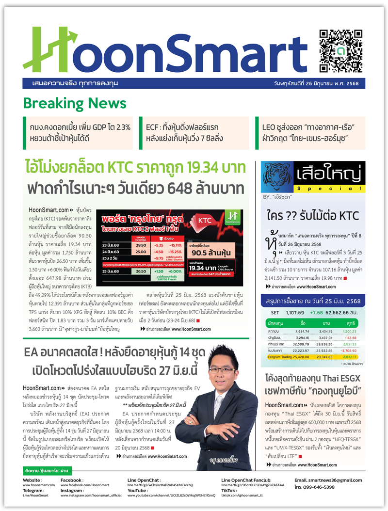 หนังสือพิมพ์ HoonSmart ปีที่ 8 ฉบับวันที่ 26 มิ.ย. 2568 25/06/2025 20:08002Breaking NewsExclusive News Facebook iconFacebookTwitter iconTwitterLINE iconLine
